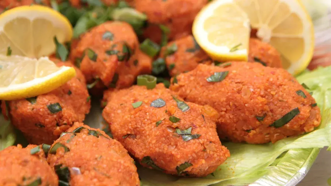ทำจากถั่วเลนทิลแดง บัลเกอร์ละเอียด เกลือ หัวหอมสับละเอียด ต้นหอม มะเขือเทศ และอาซิบิเบอร์ซัลกา (พริกแดงวางบนเนื้อสับ) และผักชีฝรั่งบด มีมาในขนาดพอดีคำ
