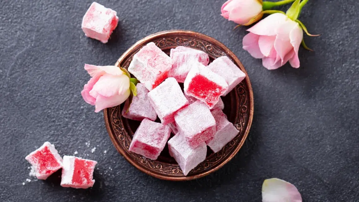 การผสมผสานอย่างเรียบง่ายของน้ำ แป้ง และน้ำตาล - นำมาต้มรวมกันจนได้เป็นลูกเต๋าเนื้อละเอียดที่ปรุงรสด้วยน้ำกุหลาบ พิสตาชิโอ และรสชาติอื่นๆ - ยังคงสร้างความพึงพอใจอย่างต่อเนื่อง