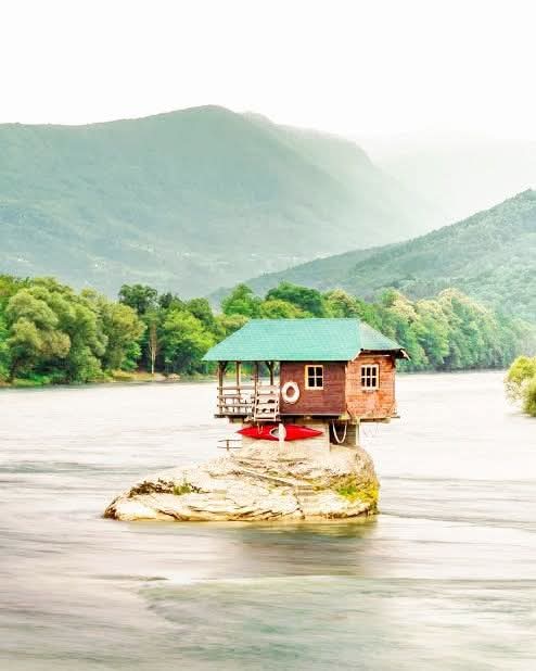 ท่ามกลางกระแสน้ำที่ไหลเอื่อยของแม่น้ำดรินา (Drina River) ในประเทศเซอร์เบีย มีบ้านไม้หลังเล็ก ๆ ตั้งตระหง่านอยู่บนโขดหินกลางแม่น้ำอย่างโดดเด่น 🏠🇷🇸 บ้านหลังนี้ไม่ได้เป็นแค่สิ่งปลูกสร้างธรรมดา แต่กลายเป็นสัญลักษณ์แห่งความเรียบง่ายและเสน่ห์ที่ทำให้ผู้คนทั่วโลกต้องหยุดมอง