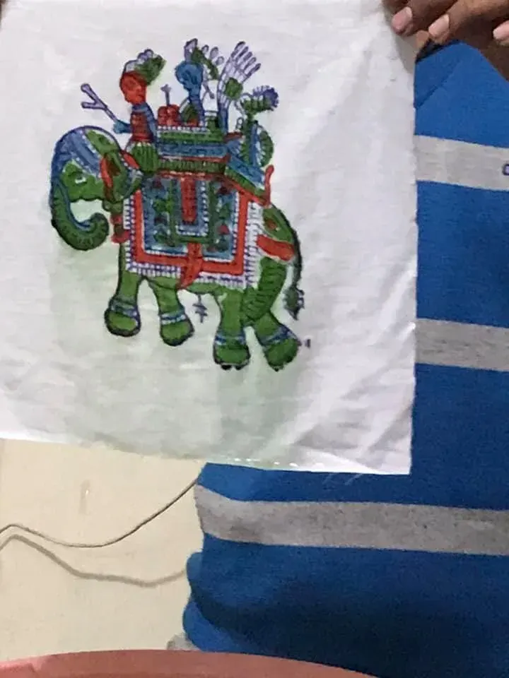 ทดลองได้ในหลายสี ดอกไม้หากว่านำมาประทับรอบตัวเสื้อของเรา สวยไปอีกแบบนะ แต่ในอินเดียหรือเนปาลนั้นในเสื้อที่ขายทั่วไปนั้นจะเป็นเพียงรูปใดรูปหนึ่งเพื่อที่จะขายในเรื่องของสัตว์ช้างประจำชาติในหลากสี