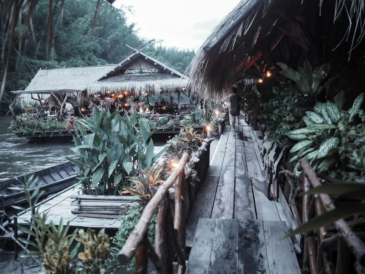 - River Kwai Jungle Rafts Floating Hotel ที่พักเเพ ริเวอร์เเคว จังเกิ้ลราฟท์