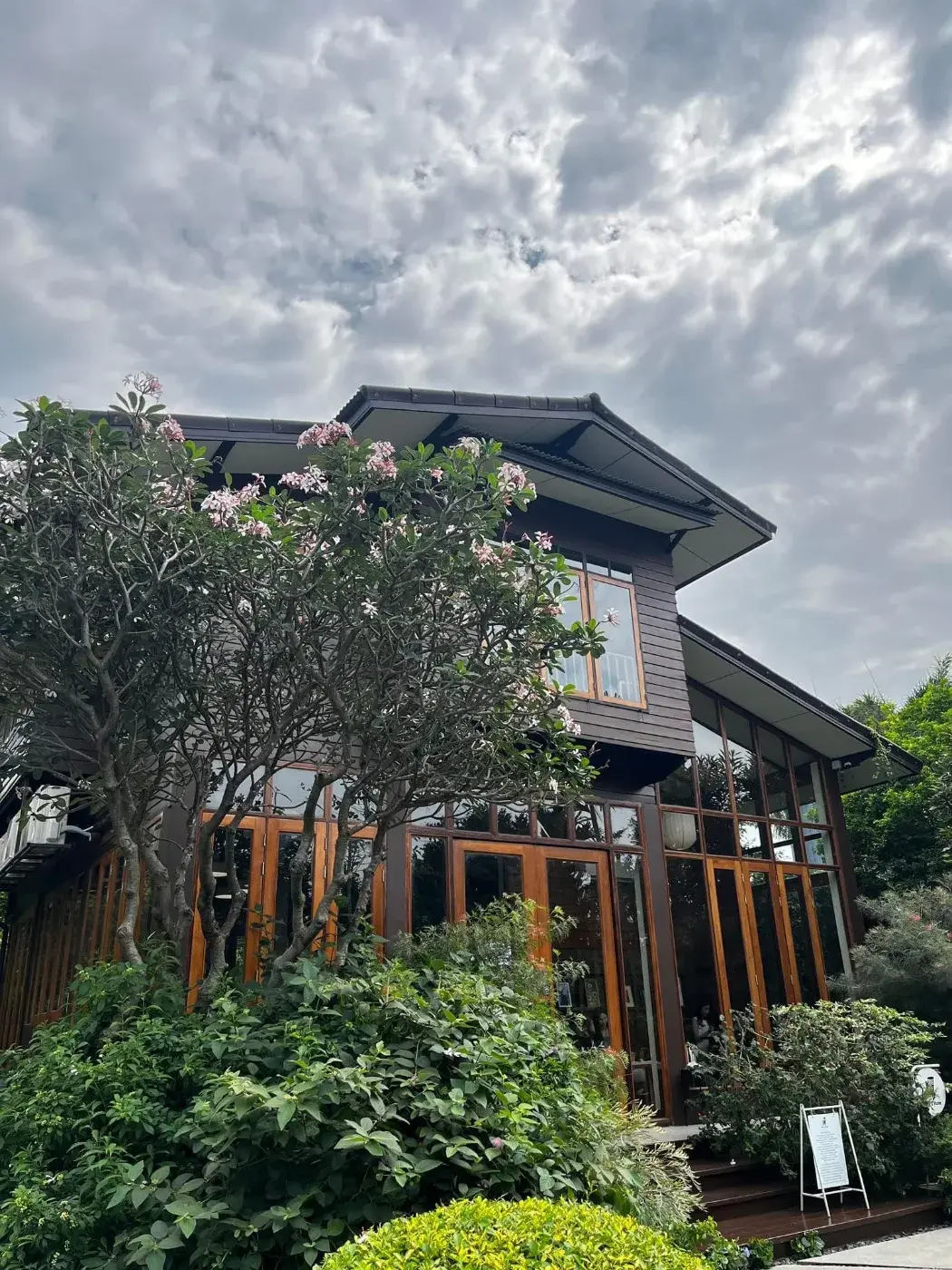 ระหว่างทางที่นั่งวินเข้าไป คือเป็นระแวกบ้านคนเลย พอถึงหน้าคาเฟ่แล้ว บรรยากาศด้านหน้าคาเฟ่ก็ดีแล้วนะคะ คือมีที่จอดรถ มีต้นไม้เยอะ ยิ่งพอเริ่มเข้าไปข้างใน เหมือนอยู่อีกโลกนึง เหมือนไม่ใช่ในกรุงเทพอ่ะ ธรรมชาติมาก ในพท้นท่คาเเฟ่นี้มีต้นไม้ สวนหญ้า มีบ้านหลังใหญ่ 2 ชั้นเป็นบ้านไม้ ความรู้แรกที่เห็นคือ อบอุ่นมาก เหมือนมาเยี่ยมบ้านญาติ