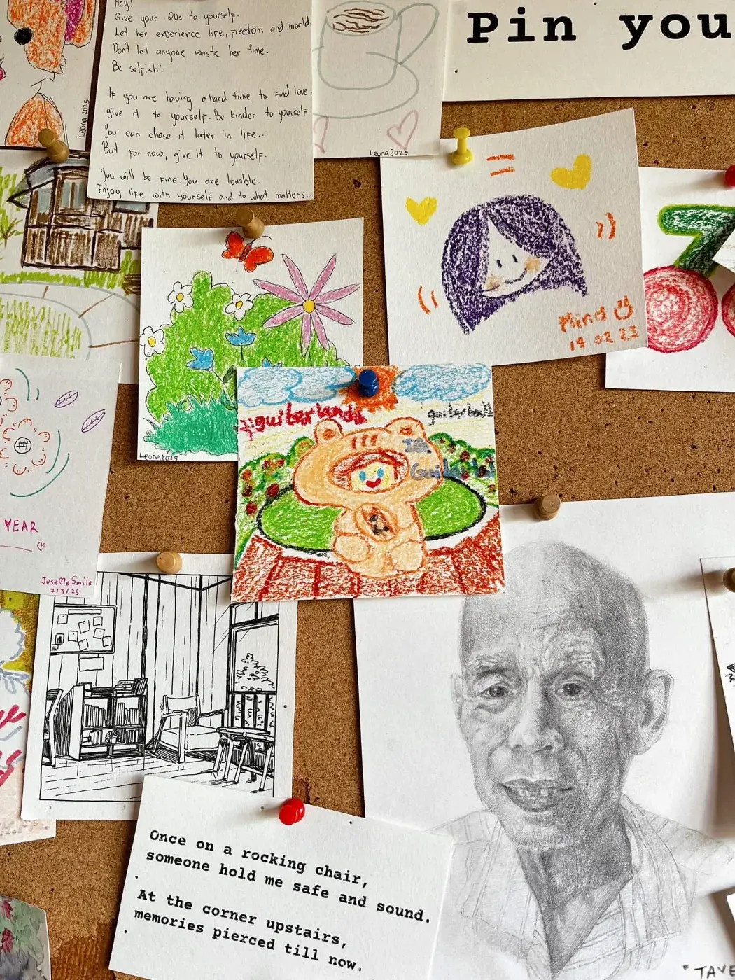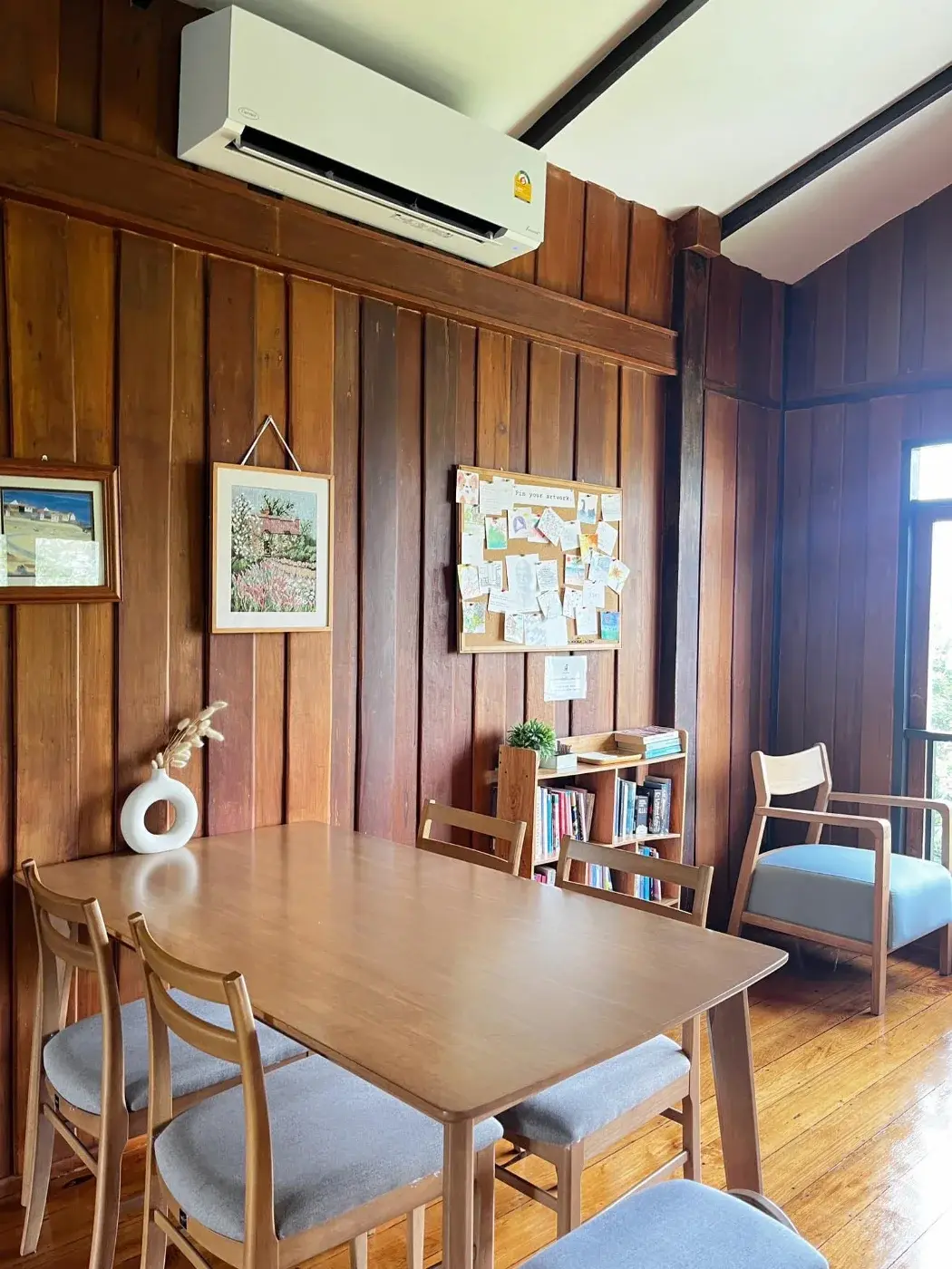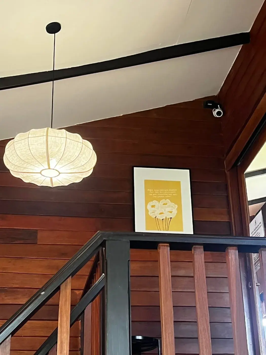 ระหว่างกินก็นั่งเล่นถ่ายรูปไป ชั้น 2 คนก็เริ่มน้อยแล้ว เราก็ย้านขึ้นไปชั้น 2 คืออยากเห็นหมดทุกที่อ่ะ ว่ามีอะไรบ้าง อ้อ คาเฟ่นี้ถ้าขึ้นไปข้างบน ต้องถอดรองเท้านะ เค้าจะมีช่องเก็บตรง แถวๆ บันได มาต่อกันๆ ชั้น 2 นะ จะมีโถง 1 และ ห้อง 2 ห้อง 1 ห้อง มีโต๊ะตรงกลางไม่มีเก้าอี้คือนั่งพื้นเอา ส่วนอีก 1 ห้อง น่าจะเป็นห้องเก็บของๆ โต๊ะข้างบนชั้น 2 มี 5-6 โต๊ะนี่แหละ เค้ามีพวก กิจกรรมให้ทำด้วยนะ มีกีะดาษแผ่นเล็กๆ ให้วาดรูปด้วยใครอยากวาด วาดเสร็จนำไปติดตรงกระดานโชว์ผลงานได้ 555555 เราก็ไปวาดมา 1 รูป ถ้วย เอาฟิล 5555555