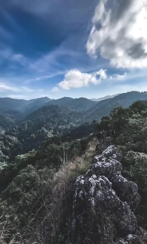 เส้นทางเดินค่อนข้างท้าทาย บางช่วงเป็นทางชันเล็ก ๆ ที่ต้องจับรากไม้ บางช่วงก็ต้องเดินลัดเลาะหิน แต่ธรรมชาติรอบข้างนั้นงดงามมาก โดยเฉพาะตอนใกล้ถึงยอด ทิวทัศน์รอบด้านเหมือนภาพวาดเลยค่ะ