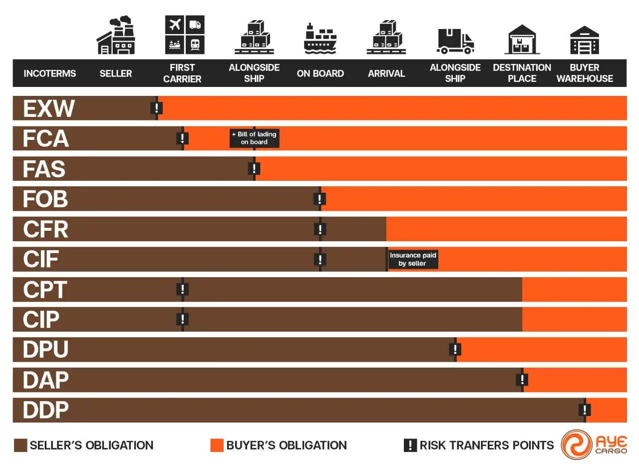 หลังจากที่เราเข้าใจแล้วว่า Incoterm คืออะไร และทำไมจึงสำคัญสำหรับการค้าระหว่างประเทศ โดยเฉพาะเมื่อมีการ ส่งของไปต่างประเทศ ต่อไปเราจะพาคุณมารู้จักกับ Incoterms ทั้ง 11 ข้อ