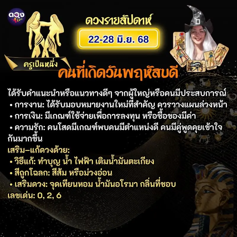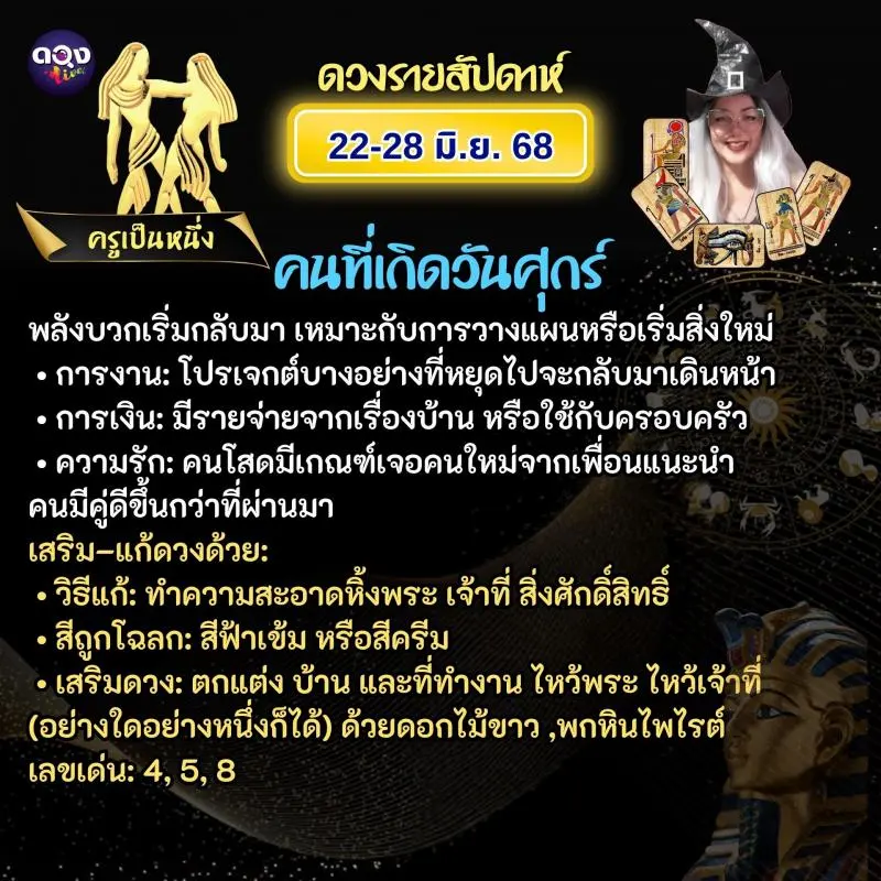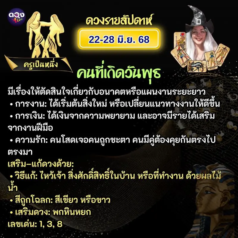 ดวงรายสัปดาห์ 22-28 มิถุนายน 2568 byครูเป็นหนึ่ง
