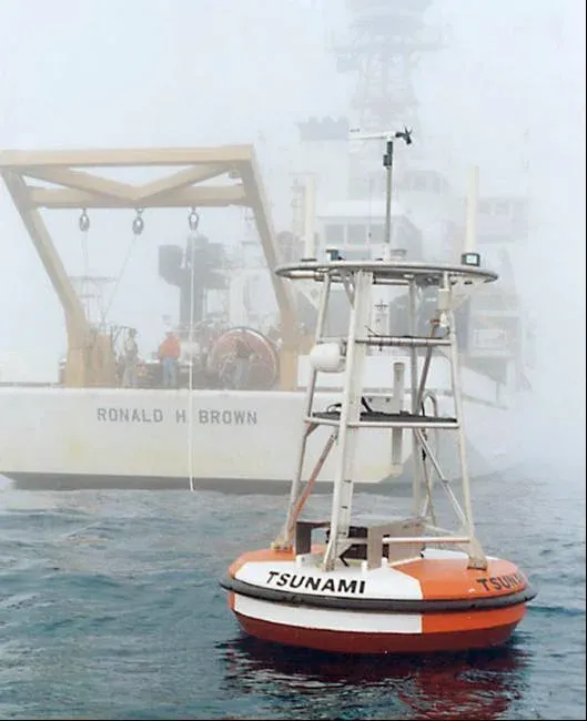 หากคุณอยู่ในเรือและมีเวลาเพียงพอ ให้ ขับเรือไปยังพื้นที่น้ำลึก เพราะในทะเลลึก คลื่นสึนามิจะมีความสูงไม่มากและไม่เป็นอันตรายเท่าคลื่นที่เข้าฝั่ง แต่ต้องมั่นใจว่ามีเวลาเพียงพอที่จะออกไปถึงน้ำลึกได้นะคะ