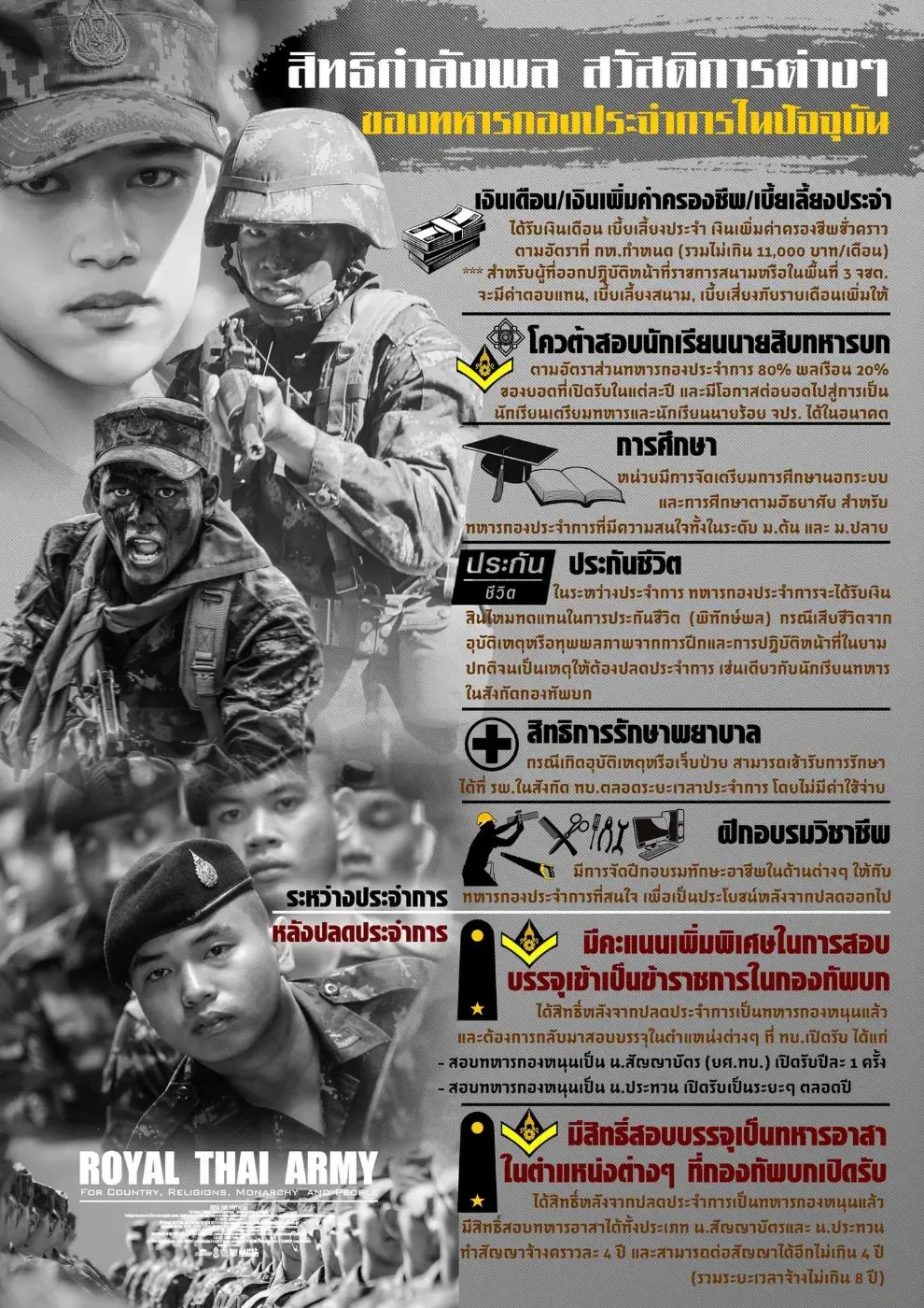 สวัสดิการต่างๆ ที่ทหารกองประจำการจะได้รับในระหว่างเข้าประจำการ