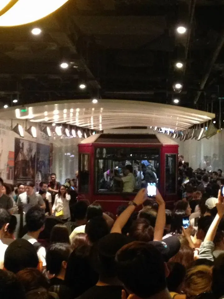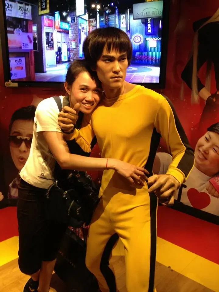 พอเรานั้นลงจากรถ เราเดินขึ้นมาจะเจอนิทรรศการ ที่ได้มีการจัดไว้คือหุ่นขี้ผึ้งคนดัง ดังขนาดไหนไม่รู้ ทำไมเรานั้นไม่รู้ว่าคนนี้เขาคือใครแต่ว่าเหมือนคนมากยืนอยู่นิ่งเรียงรายกัน มองคนเดินผ่านไปมา ได้มาถ่ายภาพด้วย กลมกลืนกับเรามาก เมื่อเรานั้นไปยืนถ่ายด้วย คนจีนหันมาพูดเป็นเหมือนเพื่อนกันเลยนะ สีเดียวกันเลย