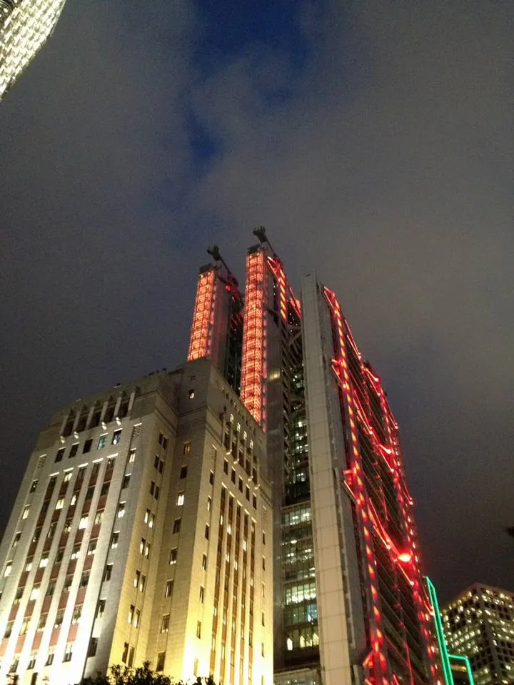 ตรงนี้เหมือนว่าธรรมดา แต่ว่าสูงกว่าเพื่อน หากว่าเราดูแล้ว คงนึกไม่ได้ว่าหากว่ามันล้มลงมาจะเหลือไหม แต่ที่นี่แน่นหนามากเพราะว่าอยู่มานานกว่าสิบปีแล้ว ไฟแต่ละดวงคือไฟในที่ทำงาน ในฮ่องกงนั้นพื้นที่ในการสร้างค่อนข้างที่จะแพง ที่ทำงานหรือบริษัทนั้นจะอยู่ในตึกสูง หากว่าเรานั้นไปติดต่อเรื่องหลายเรื่องในตึกเดียวคือเรียบร้อยเพราะว่ามีทุกอย่างที่เดียว สะดวกสบายในการเดินทางด้วย