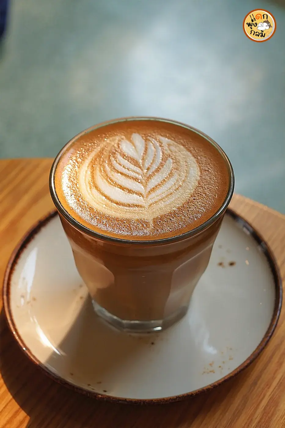 ☕️ลาเต้ร้อน 120.- รสชาติเข้มกล่มกล่อม หอม นุ่ม ละมุน แต่งฟองนมเป็นลายใบไม้