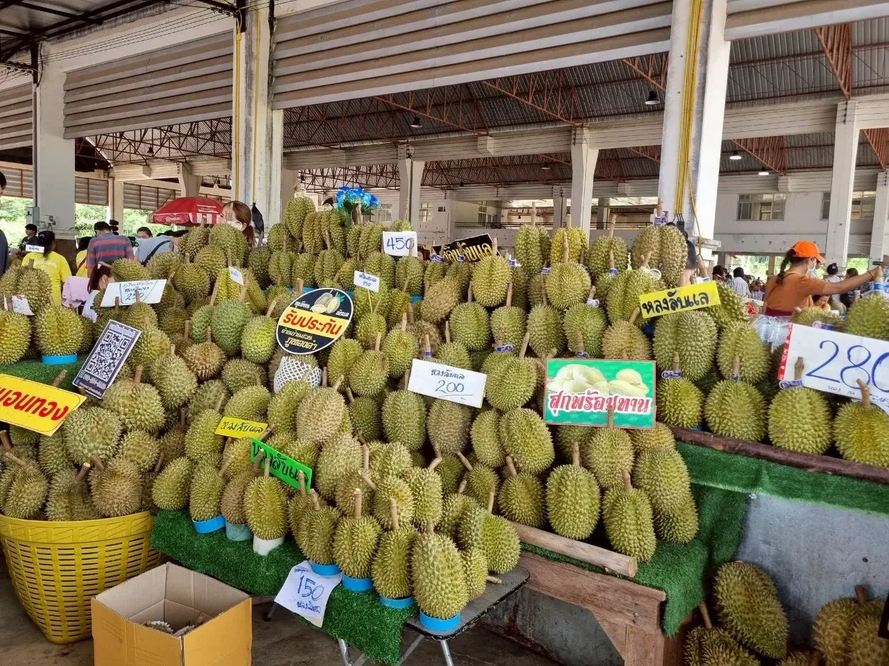 ที่นี่..จะคึกคักไปด้วยพ่อค้าแม่ค้า และนักท่องเที่ยวจำนวนมากที่แห่กันมาเพื่อเลือกซื้อ และลิ้มรสทุเรียนพื้นบ้านหลากหลายสายพันธุ์...