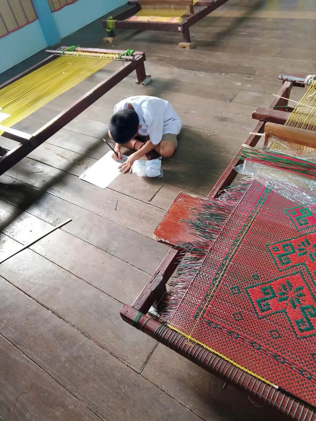 นอนนั่งดูส่องไปมา ในการทำนั้นเหมือนตรงนี่จะเร็วขึ้น คือต้องมีคนช่วยคนหนึ่งวาดแบบคนหนึ่งนั่งทอ จะให้เห็นลวดลายที่ชัดเจนนั้นจะมีการนอนส่อง