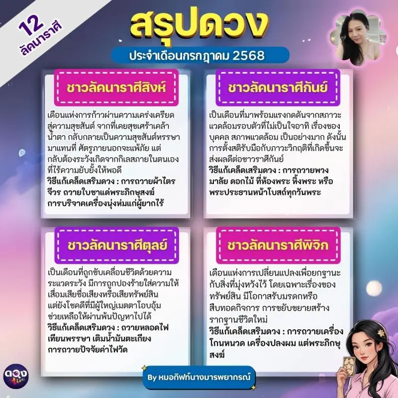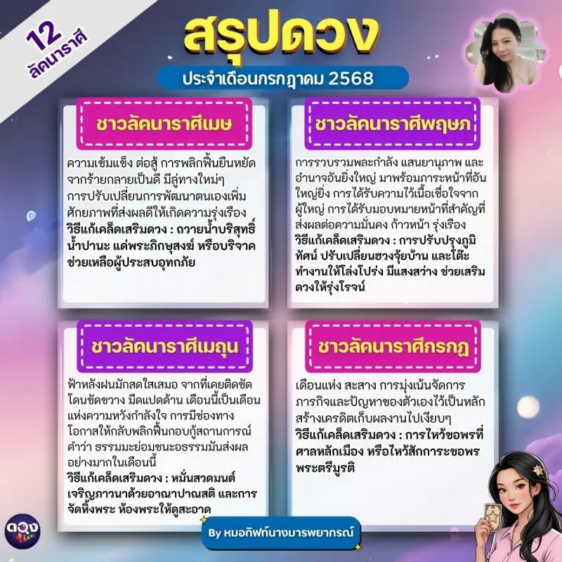 สรุปดวงประจำเดือนกรกฎาคม 2568 ของชาว 12 ลัคนาราศี จะเป็นอย่างไร By หมอกิฟท์นางมารพยากรณ์