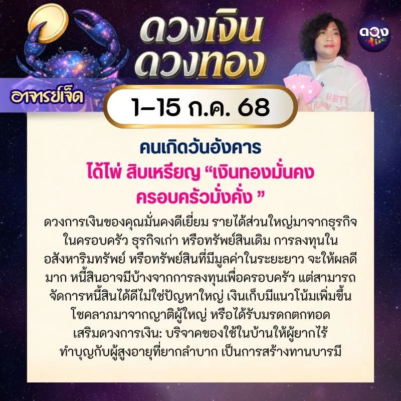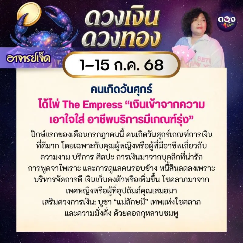 ดวงเงินเงินดวงทอง ปักษ์แรก 1–15 ก.ค. 68 โดยอ.เจ็ด แม่นตัวแม่