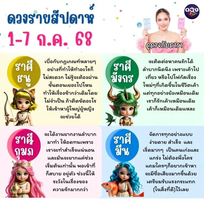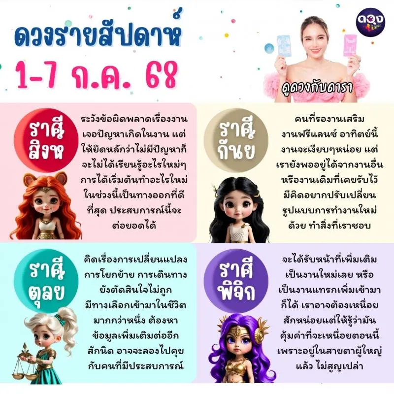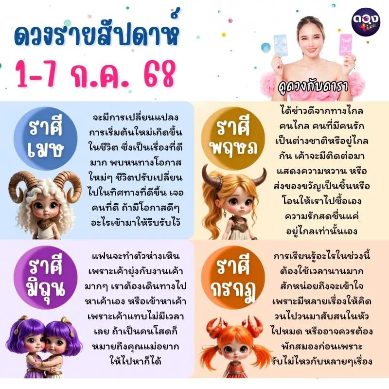 ดวงรายสัปดาห์ 1-7 กรกฎาคม 2568 ดูดวงกับดารา
