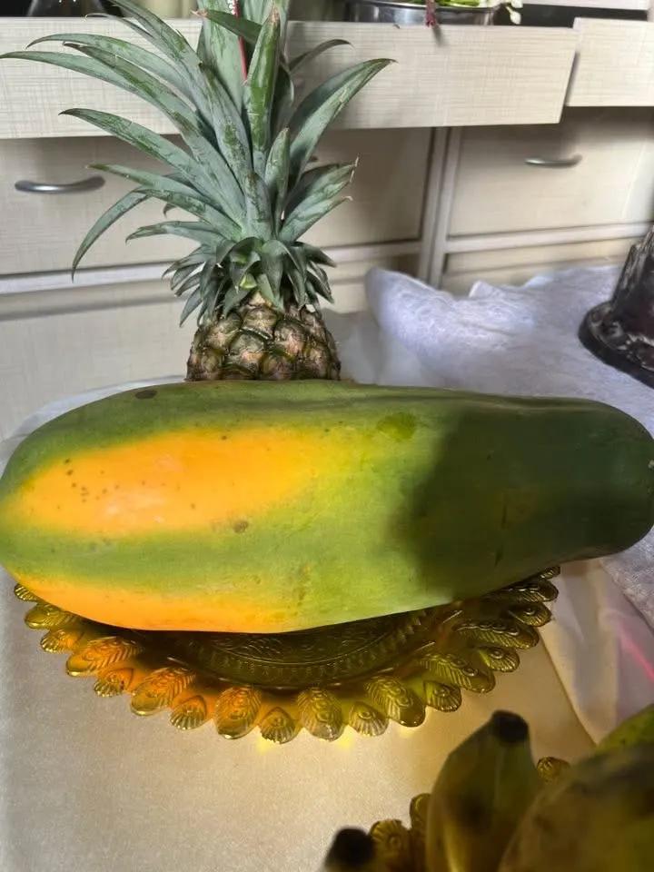 เลือกมะละกอที่สวย สับปะรดที่วิจิตรวางในพานทอง