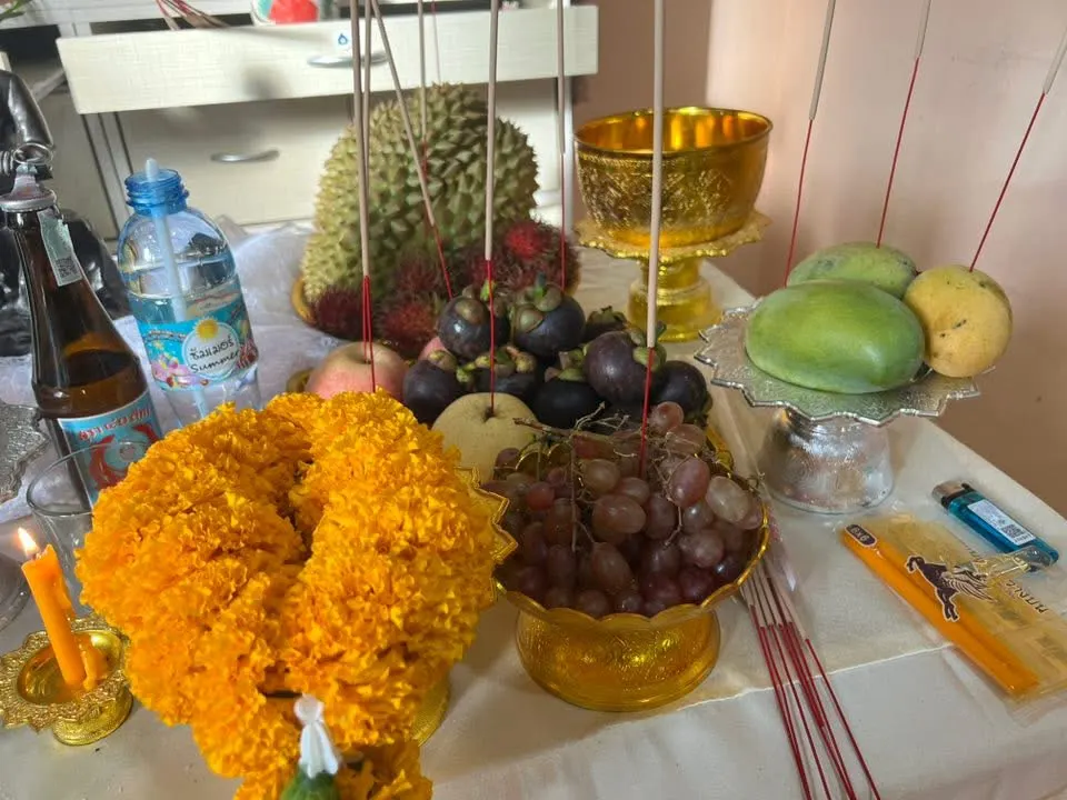 เรามีความรู้สึกดีและศรัทธาอย่างมากในการกราบไหว้ ยิ่งก่อนที่เรานั้นจะไปแข่งหรือทำอะไรไหว้ท่านขอพรแล้วเดินทาง ในทุกครั้งก็จะนำสิ่งที่ดีกลับมาเสมอ วันนี้วันคล้ายวันเกิดจึงได้จัดบวงสรวงผลไม้มงคลเก้าอย่าง ตามตำราที่เคยทำมา