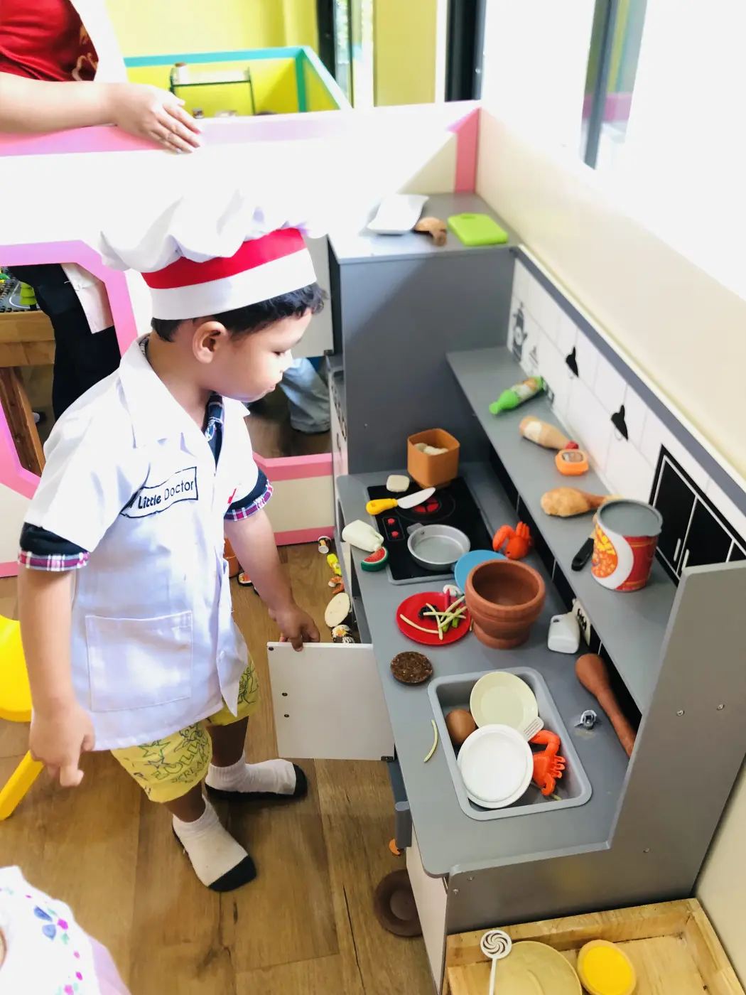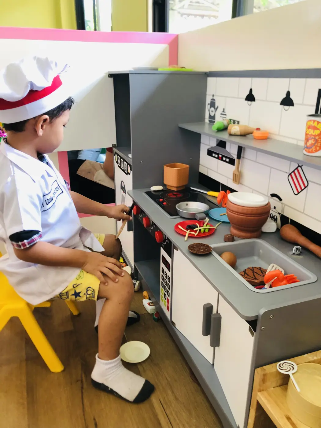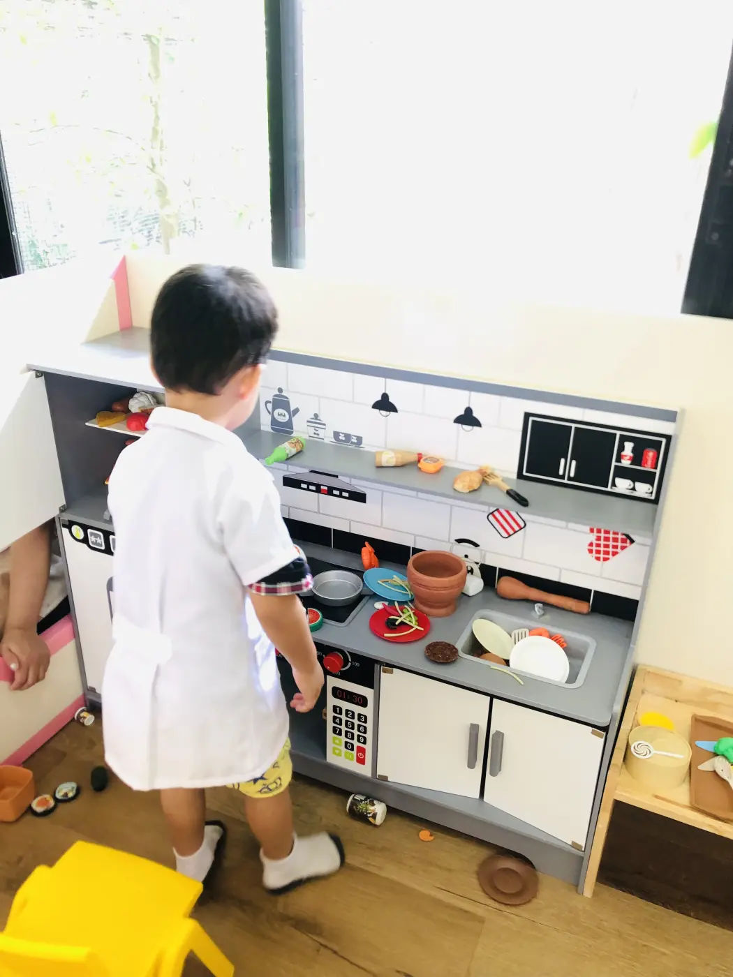 ตอนนี้ได้เวลาในการทำอาหารแล้ว จะต้องนั่งเพราะว่าใช้เวลาในการยืนนานแล้ว สิ่งของทุกอย่างนั้นเหมาะสมกับเด็กทั้งหมด ไม่เป็นอันตราย ยิ่งเล่นยิ่งสนุกเพราะว่าทำจากพลาสติก และมีการทำความสะอาดตลอด