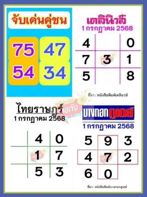 เลขดังสำนักพิมพ์ เดลินิวส์ ไทยราษฎร์ บางกอกทูเดย์