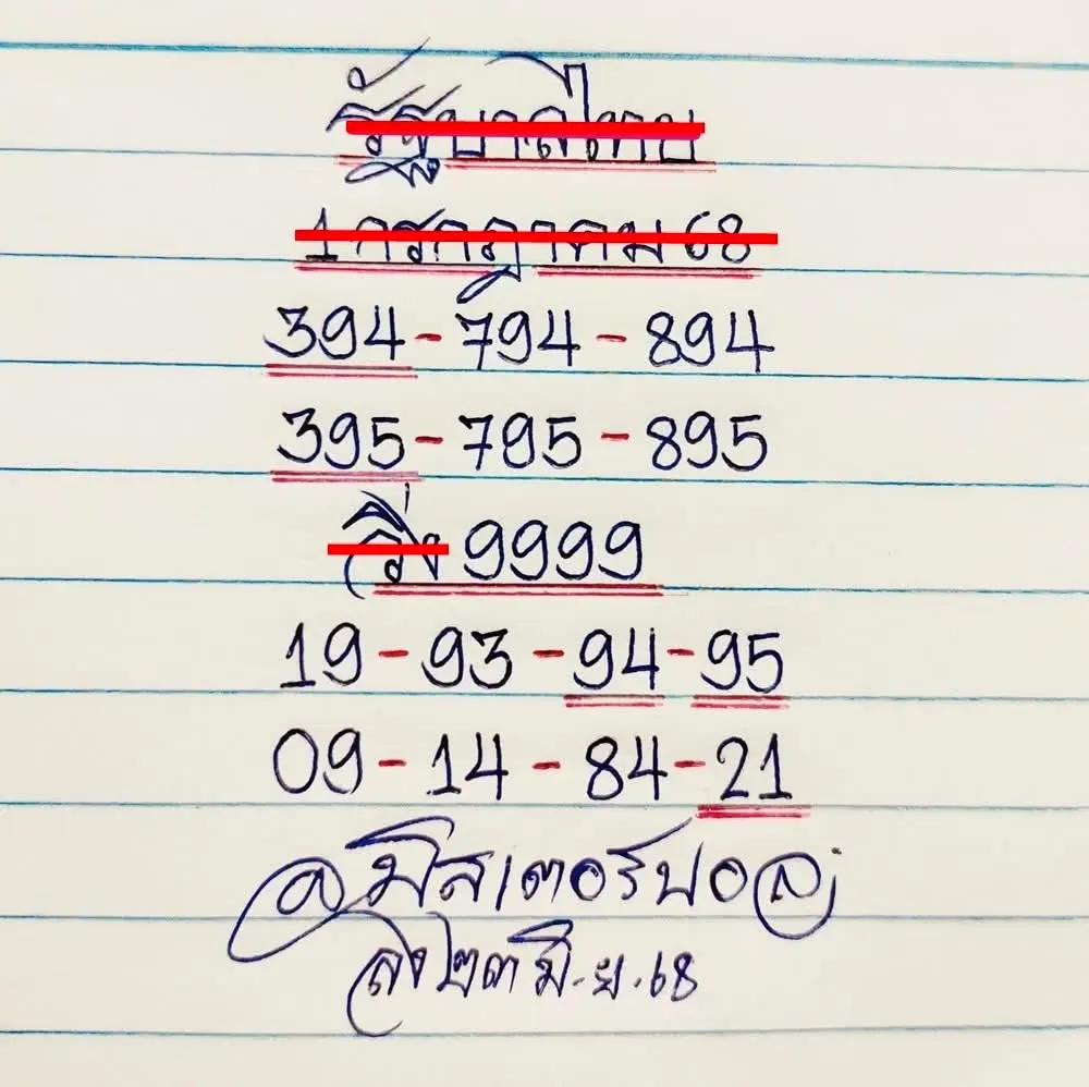 หวยมิสเตอร์บอล งวดวันที่ 1 กรกฎาคม 2568
