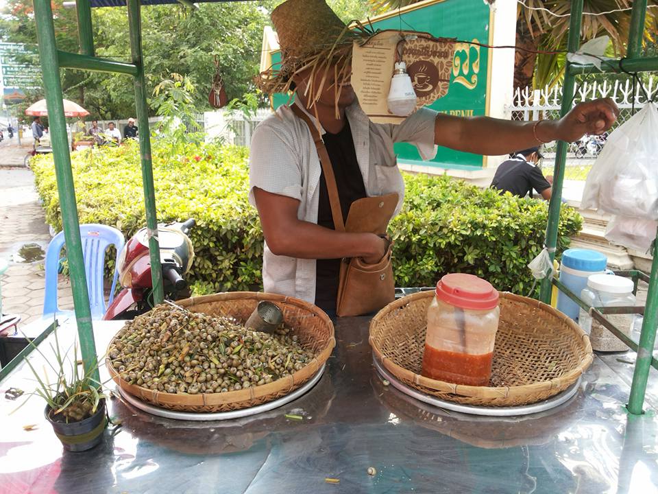 จินตนาการคือการเรียนรู้ อาหารก็เช่นกันวันนี้จะมาเล่าให้ฟังในเมนูอาหารที่ในกัมพูชาถือว่าเป็นอาหารว่าง เพราะว่าจะทานในตอนเย็นเมื่อไปเดินเล่น หรืออาจจะนั่งกินเวลาที่คุยกันในยามเย็นบรรยากาศดีๆ ได้พูดคุยกันด้วยอิ่มท้องด้วย ส่วนรสชาตินั้นเหมือนกันกับเราทานหอยนึ่ง แต่ในไทยจะมีแกง มีลวก ที่นี่ก็ลวกเช่นกัน แต่ว่าจะมีไอร้อนตลอดเวลา เพื่อให้ความหอมของสมุนไพรนั้นคงอยู่หอมกรุ่น