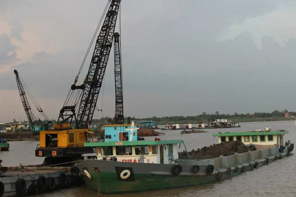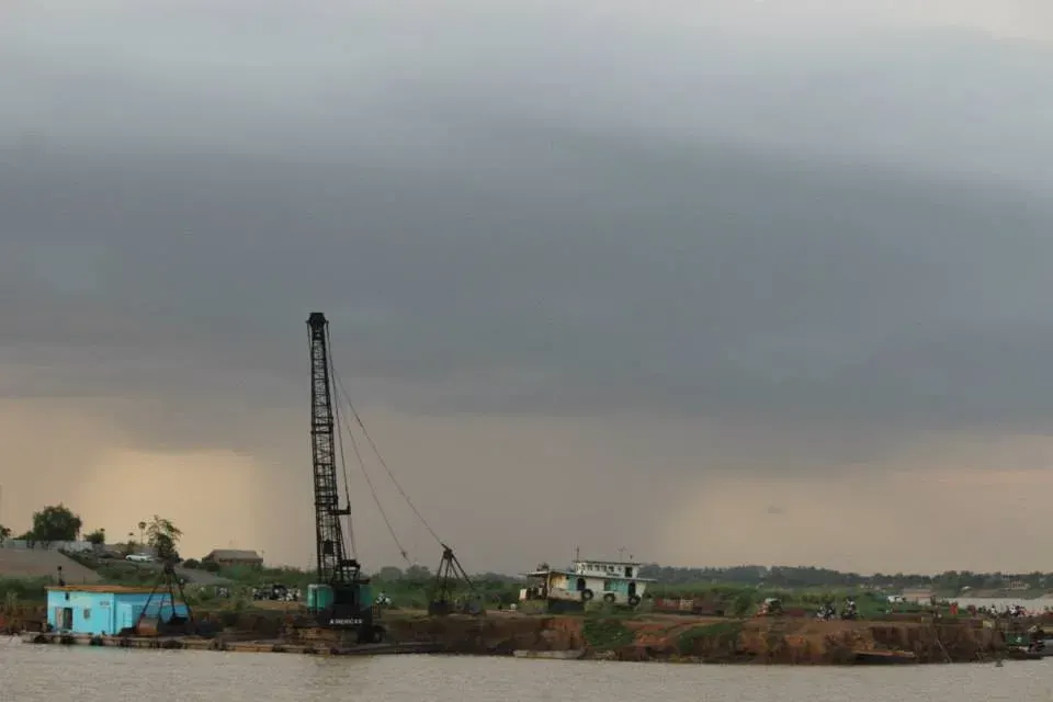 นอกจากการขุดทรายแล้วยังมีการสร้างแพเพื่อที่จะสร้าง หินตรงนี้คนที่ขับเรืออีกไม่นานดินตรงนี้จะหายไปจากที่นี่แล้วกลายเป็นเพียงแม่น้ำที่กว้างใหญ่ ตอนที่เรามองนั้นมีเรือจอก มีเครื่องแม็คโครดูท่าทางเหมือนเครื่องในการเจาะน้ำบาดาน