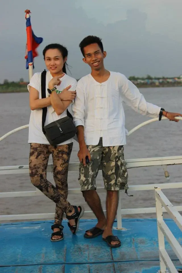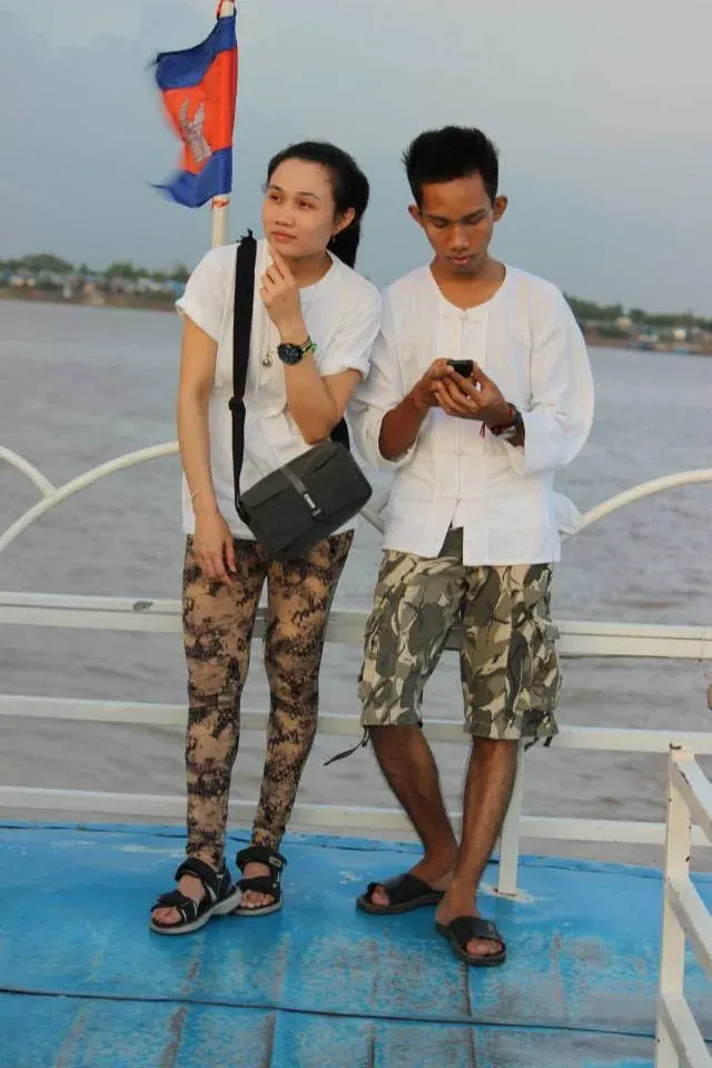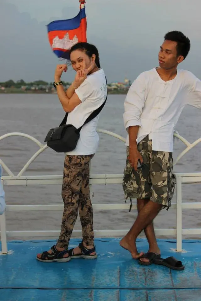 วันนี้เราเดินทางมาที่หน้าพระราชวัง ด้วยความที่ว่านักศึกษานั้นจะพามาเที่ยวทะเล ทะเลภาษาเขมรภาษาไทยคือ แม่น้ำจ้า ทะเลก็ทะเล ลงเรือล่องไปเลย บนเรือนั้นแน่นอนว่าครั้งแรกย่อมตื่นเต้นเสมอแน่นอน ถ่ายรูปตั้งแต่ลงเรือ เรือออกจากฝั่งถ่ายกันเลย เอาให้เมมเมอรี่เต็มหมด ถ่ายจนเหนื่อยแล้วกลับมานั่งกินหอยมะพร้าวนึ่งสมุนไพรต่อ
