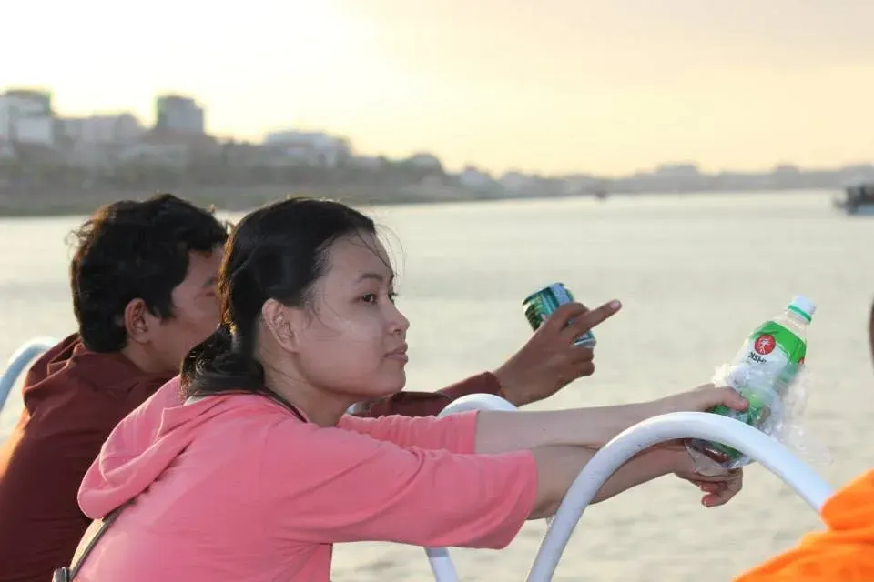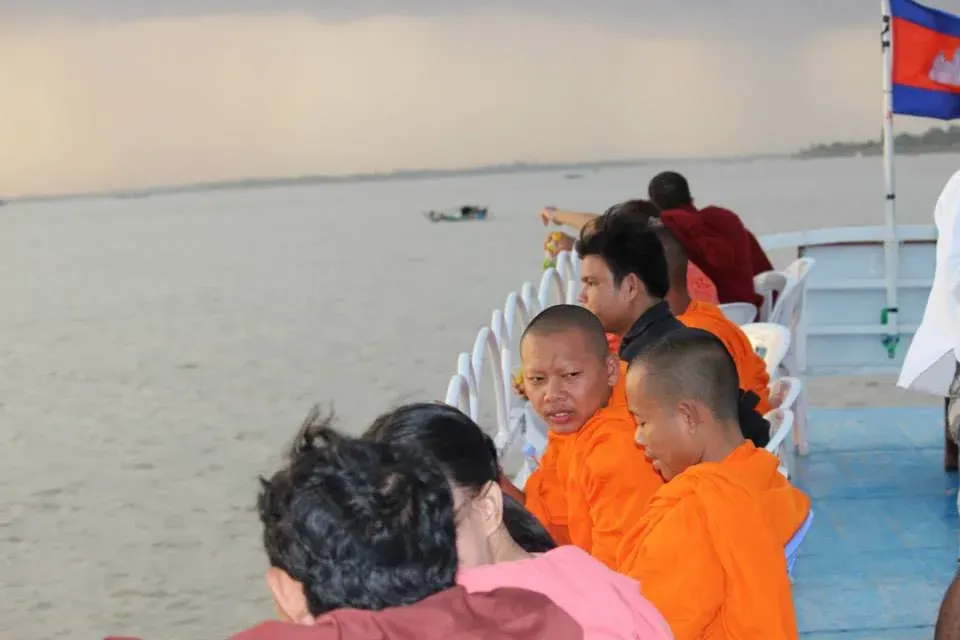 เสน่ห์ของการนั่งเรือที่นี่นั้น เราไม่ต้องกลัวเวลาที่ขึ้นเรือ เพราะว่าในเรือของเรานั้นมีพระคุ้มครอง สีเสื้อของโยมก็แยกไม่ค่อยจะออกเลยกับจีวรหระ ในเรือลำนี้มีพระทั้งหมด ห้ารูปเลยนั่งเหมือนกันกับเรา สงสัยจะสนทนาธรรมกันตลอดเส้นทาง ติดกันนั้นคือคู่รักที่มานั่งเรือด้วยกัน สร้างความสุขและมุมดีๆ ให้แก่กัน ถือว่าเป็นกิจกรรมสร้างสรรค์ดีกว่าพากันไปนั่งดื่มสิ่งที่ไม่มีประโยชน์เข้าไปในร่างกาย