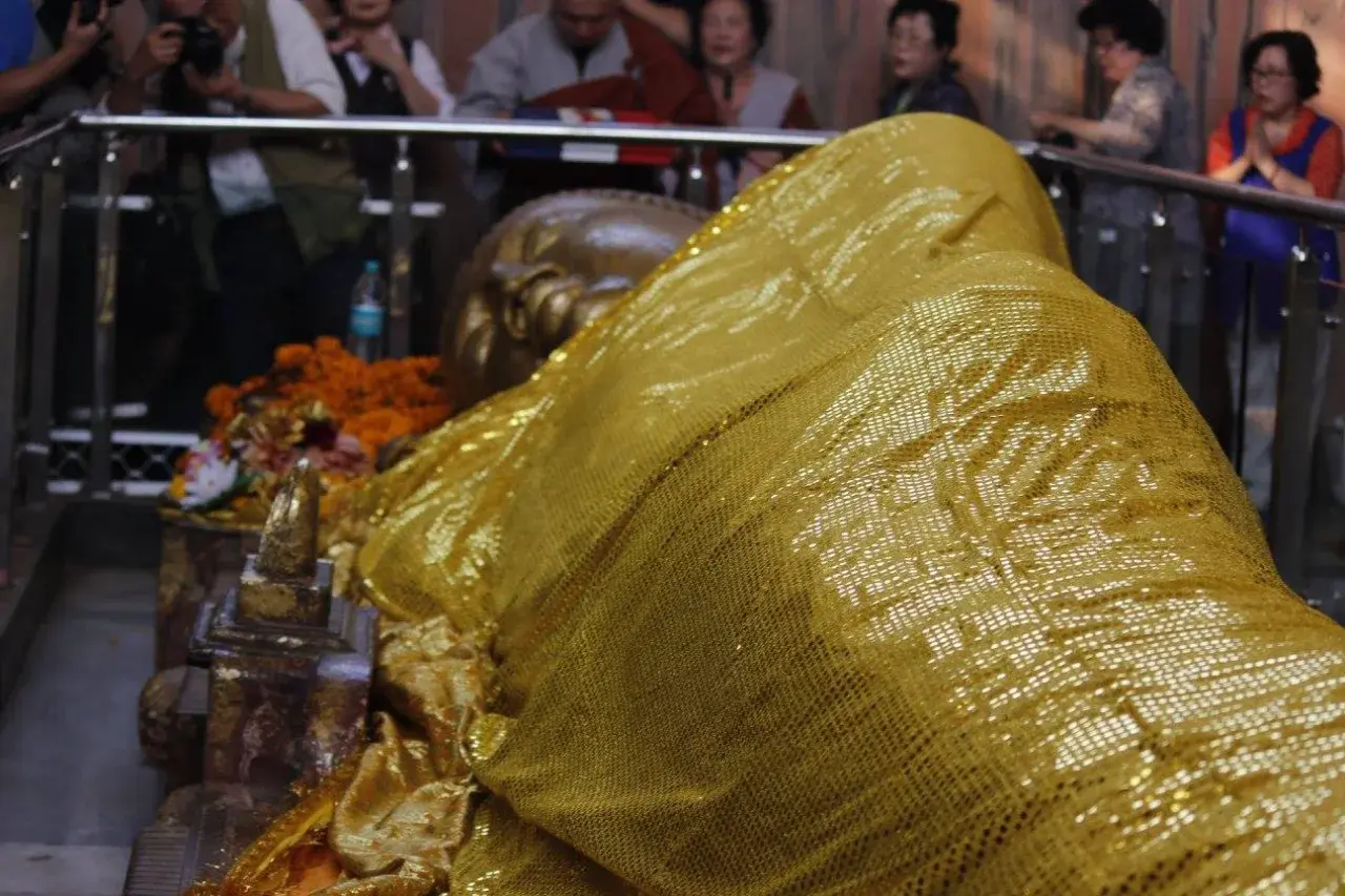 ร่างที่นอนอย่างไร้ลมหายใจ ตอนนั้นเราจึงเข้าใจพระอานนท์ที่ทำใจไม่ได้เพราะว่าพระองค์เหมือนพ่อของพระอานนท์ แต่หากว่าปลงแล้วทุกอย่างก็ผ่านไปได้ แต่เรานั้นไม่ใช่อรหันต์ พ่อยังคงนอนอยู่อย่างนี้เมื่อไหร่ที่มีคนไทยเดินทางมาเพื่อสักการะสถานที่แห่งนี้จะนำผ้ามาห่ม แต่ก่อนที่จะเข้ามาด้านในจะมีการเวียนก่อนสามรอบ สถานที่ด้านในนั้นมีความจำกัดในเรื่องของจำนวน หากว่าเรานั้นเปรียบดูเหมือนกันกับโลงศพที่เก็บสรีระของพระพุทธเจ้าก่อนที่จะนำไปถวายพระเพลิง