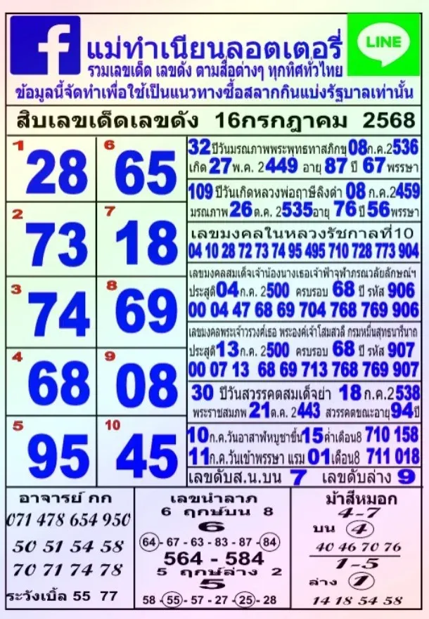 มาแล้ว! 10 เลขเด็ดเลขดัง "แม่ทำเนียนลอตเตอรี่" งวดวันที่ 16 กรกฎาคม 68..อยากรวย ส่องเลย!!
