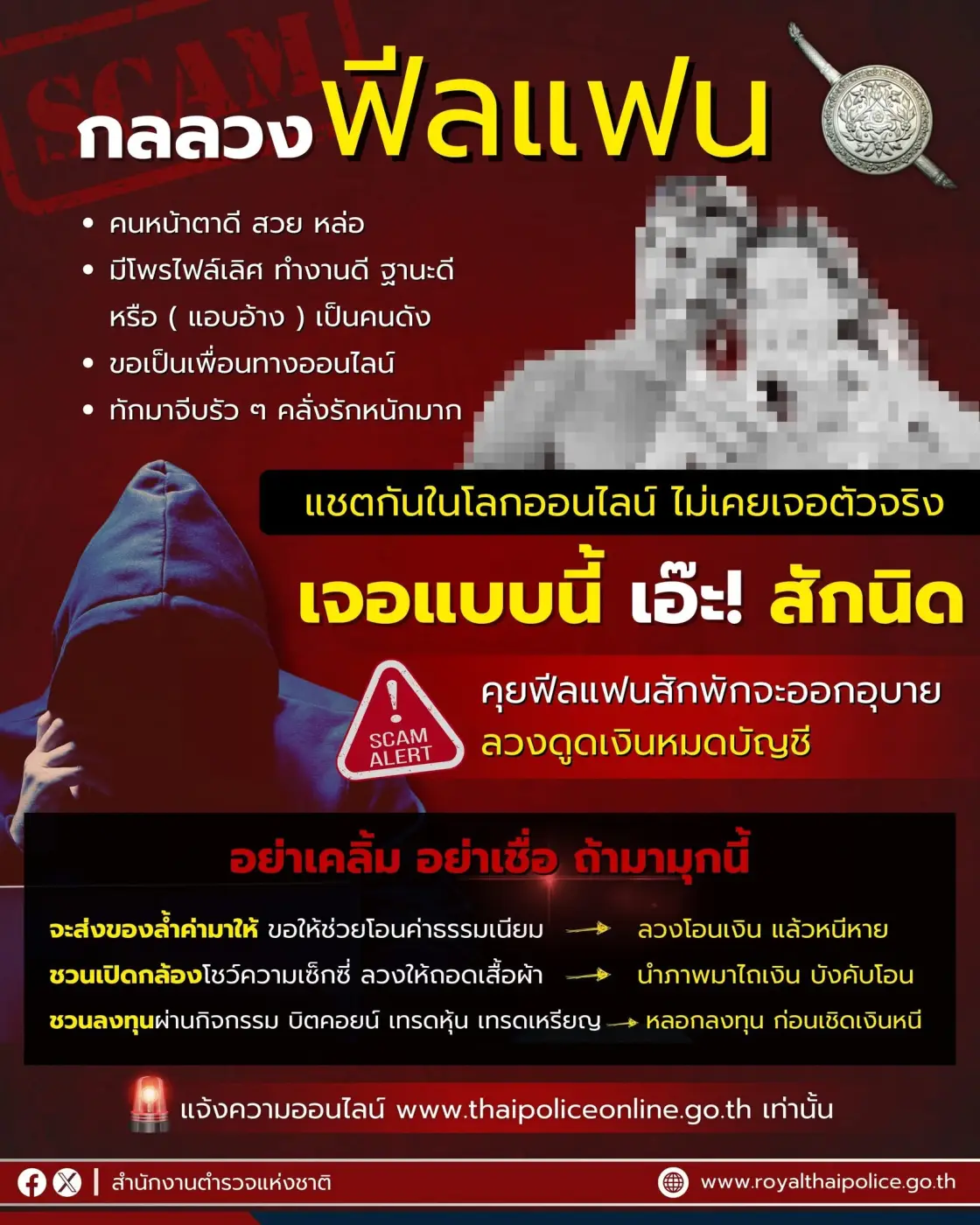 หน้าตาดี โพรไฟล์ดี บางครั้งมาในรูปแบบศิลปิน คนดัง ทักมาขอเป็นเพื่อน ชวนคุย "ฟีลแฟน" ก่อนชวนให้เสียตังด้วยอุบายต่าง ๆ