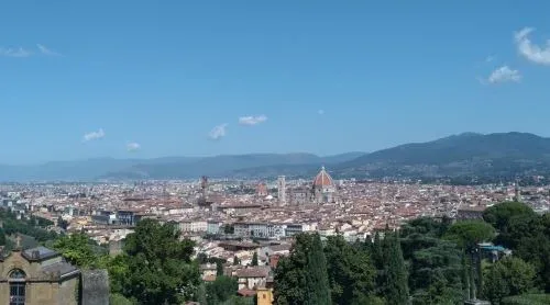 จนเดินชมเมืองเพลินข้ามแม่น้ำอาร์โนมาถึงจุดชมวิวริมจตุรัสมิเคลลันเจโล (Piazzale Michelangelo) ซึ่งเป็นหนึ่งในจุดชมวิวหลักของเมือง เห็นวิวทั้งเมืองมีโดมของมหาวิหารฟลอเรนซ์เป็นพระเอกตระหง่านอยู่ตรงกลาง พอพักเหนื่อยจากเดินขึ้นเนินชันจนถึงจุดนี้แล้ว จ้องมองยอดโดมสีแดงอิฐอยู่นาน เป็นการย้ำเตือนตัวเองอีกหลายๆ ครั้ง ว่าที่นี่ฟลอเรนซ์!! ได้มาถึงแล้วจริงๆ และยิ่งไปกว่านั้นได้เห็นความงามของเมืองนี้แล้ว ว่างามกว่าในหนังสือ ในคลิปมากแค่ไหน ได้มายืนอยู่ตรงนี้นี่เกินคาดไปมาก ไม่คิดเลยว่าทริปเยือนยุโรปอันแสนขลุกขลัก จะฝ่าฟันพาตัวเองมาถึงที่นี่จนได้ นึกขอบคุณตัวเองที่แอบกล้าบ้าบิ่น บางทีเราก็ต้องใช้ความกล้าเพื่อแลกกับอะไรบางอย่างมาเหมือนกัน อย่างไรก็แล้วแต่ ในทุกความกล้านั้นต้องมีสติรอบคอบอยู่ด้วยเสมอ