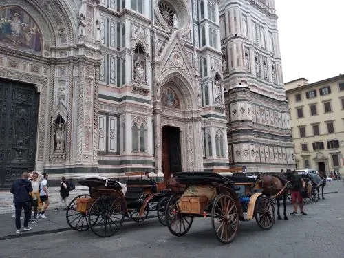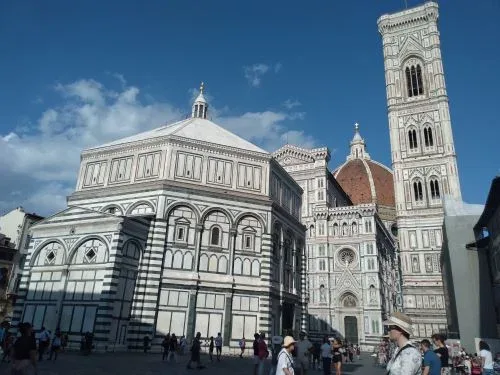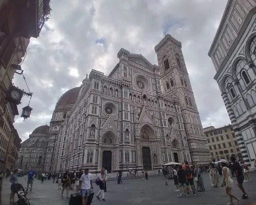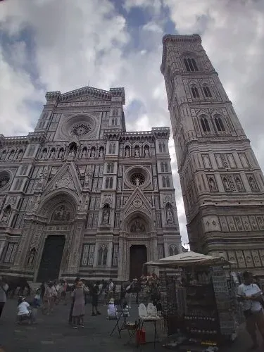แล้วก็ได้มายืนงงๆ กลางเมืองฟลอเรนซ์จริงๆ…! เพราะเป็นการมาเยือนที่ไม่ได้วางแผนไว้ล่วงหน้ามาก่อน ชนิดที่ไม่เคยคิดด้วยซ้ำว่าจะได้มีโอกาสมาที่นี่จริงๆ ด้วยความจําฝังใจตั้งแต่วัยเด็ก ถึงเรื่องราวศิลปะและศิลปินก้องโลกที่เมืองนี้ ผู้เขียนจึงไม่ลังเลเดินทางต่อตัวคนเดียวแยกกับเพื่อนมาที่นี่ จนเอาตัวเองมาเงยมองโบสถ์ดูโอโมของเมืองฟลอเรนซ์ (Duomo Florence Cathedral) ในเช้าวันแรกที่มาเยือน ได้มองเต็มตาทั้งหลังนี่...สวยกว่าในหนังสือหลายเท่า รวมทั้งจุดเช็คอินแลนด์มาร์คประจําเมืองอื่นๆ เช่น จัตุรัสเปียซซ่า เดล ดูโอโม (Piazza Del Duomo) สะพาน ปอนเต เวชชิโอ (Ponte Vecchio) และอื่นๆ