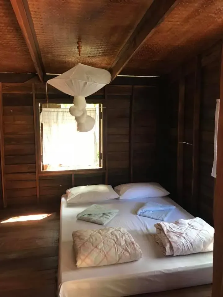 ด้านในห้องนอนนั้นมีเพียงเตียงนอน สามารถนอนได้สองคน ที่นอนนั้นลองแล้วในการนอนคือนุ่มพอดีไม่นุ่มมากเกินไป หมอนหอมสดชื่น ในห้องจะมีหน้าต่างสำหรับเปิดนั้นสามที่เลย เดินออกมาด้านนอกนั้นจะมีเปลหน้าบ้านสามารถที่จะนอนเปลแล้วมองป่าเขาสวยด้านหน้าได้เลย ในห้องนั้นไม่ต้องกลัวยุงในตอนกลางคืนเพราะว่าที่นี่มีมุ้งให้ ปลดลงมาได้เลย