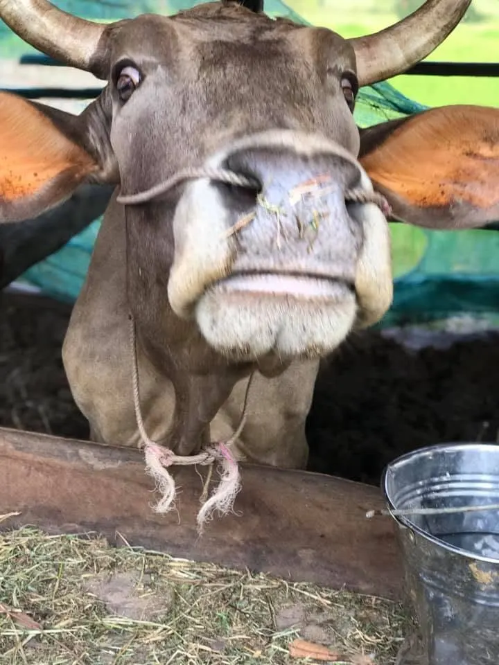 เจ้าวัวตัวใหญ่ร้องโวยวายเมื่อหิว มองหน้าทักทายเมื่อได้ยิน
