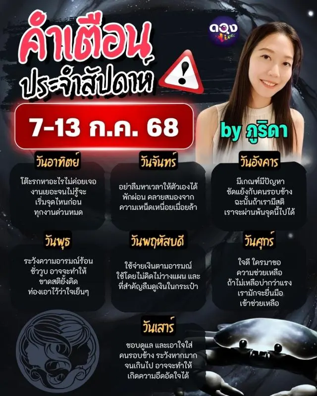 คำเตือนประจำสัปดาห์ 7-13 ก.ค. 68 by ภูริดา