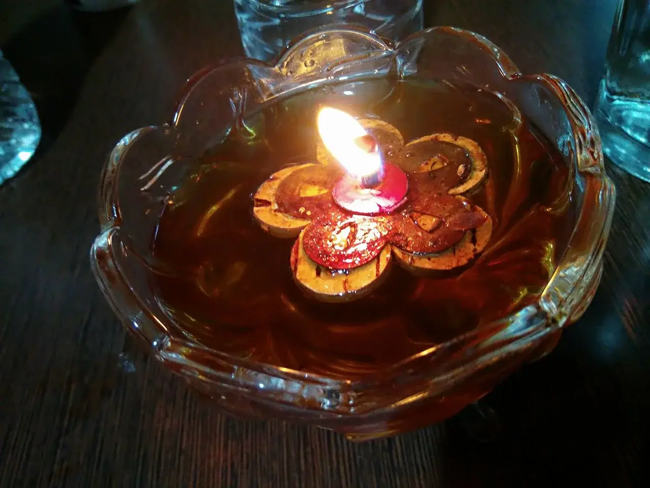 หลังจากที่เรานั้นเตรียมดอกบัว ต่อมาที่จะให้แสงสว่างกับตนเองได้คือในส่วนของเห็หอม น้ำตาเทียนบางตรั้งนั้นจะมีคนมาต่อ แก้วที่ว่านี้คือแก้วที่รองน้ำตาเที่ยน ขนาดว่าตรงนี้เป็นแก้ว หากว่าเป็นพลาสติกบางวันนั้นมี