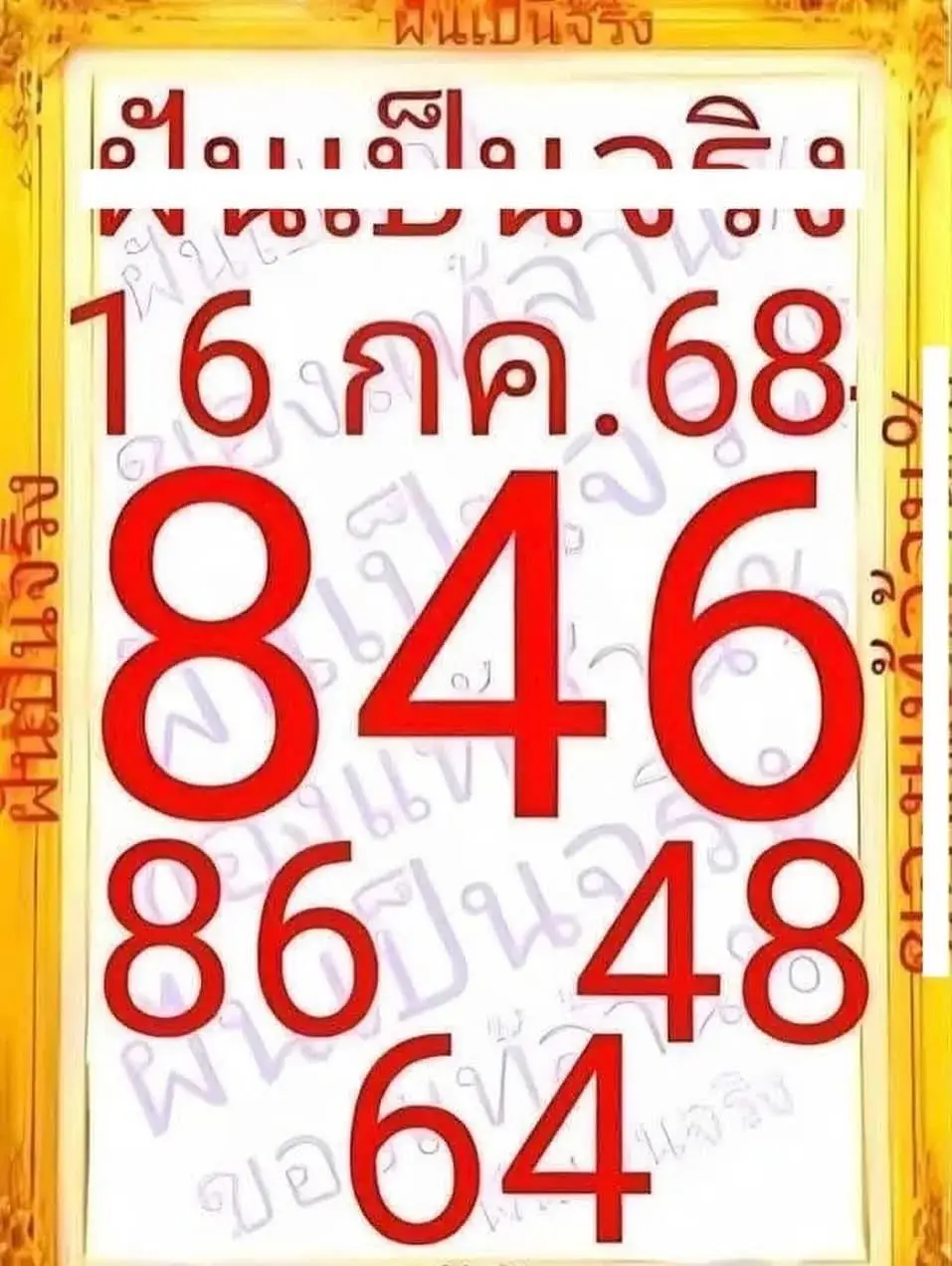 หวยฝันเป็นจริง งวดวันที่ 16 กรกฎาคม 2568