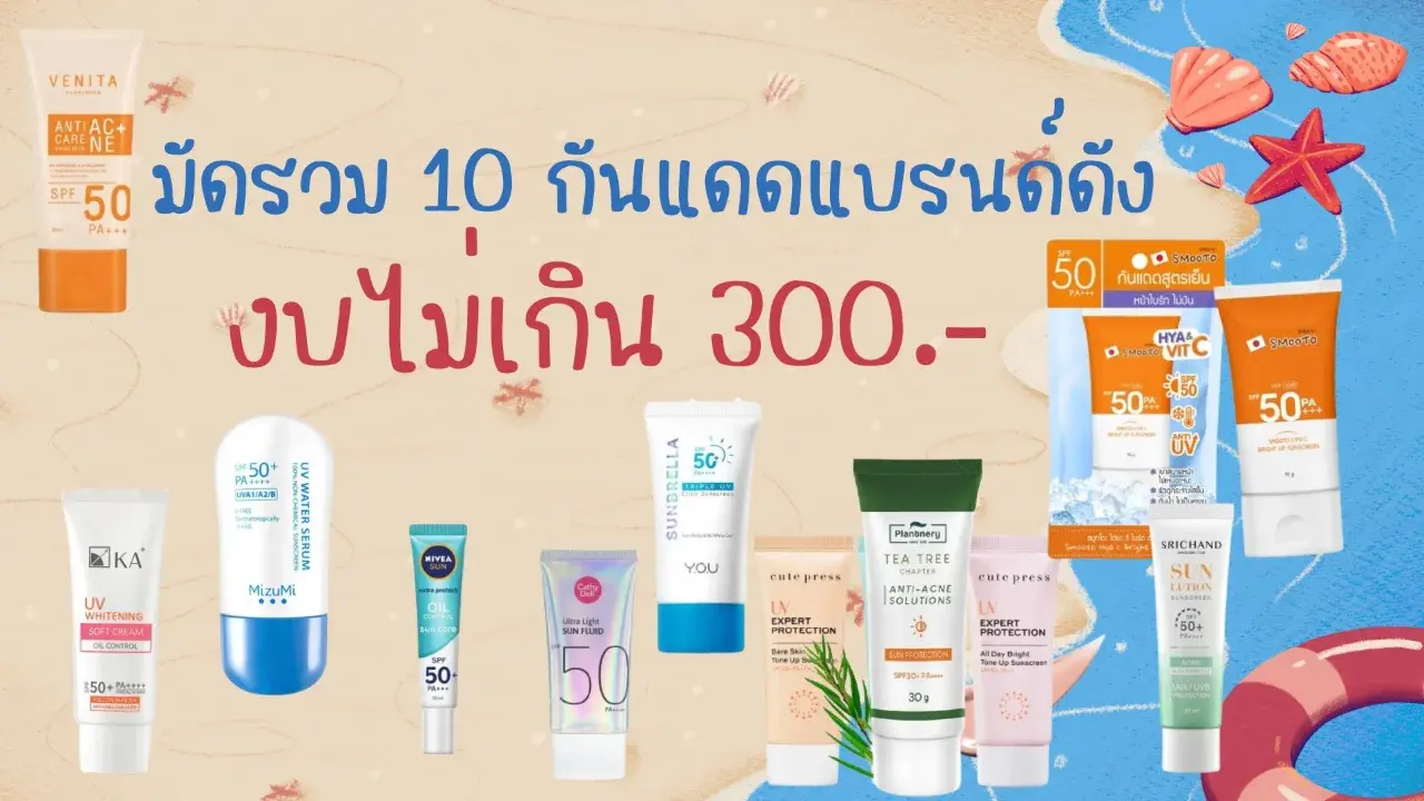 แต่การจะหากันแดดดีๆ สักตัวที่ทั้งปกป้องผิวได้ดีเยี่ยม เนื้อบางเบา แถมยังต้องราคาเป็นมิตรกับกระเป๋าสตางค์อีก บางทีก็หายากเหมือนกัน วันนี้เราเลยอาสาไปทำการบ้านมาให้แล้วค่ะ! มัดรวม 10 กันแดดตัวท็อปจากแบรนด์ดังที่หาซื้อง่าย ในงบสบายๆ ไม่เกิน 300 บาท มาดูกันว่าจะมีตัวไหนน่าสนใจและเหมาะกับผิวเราบ้าง!