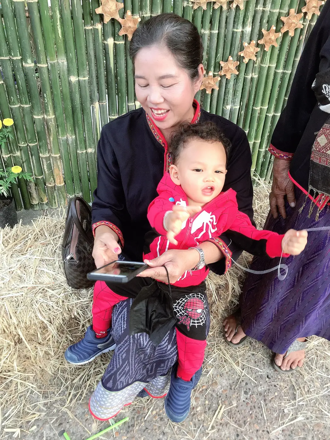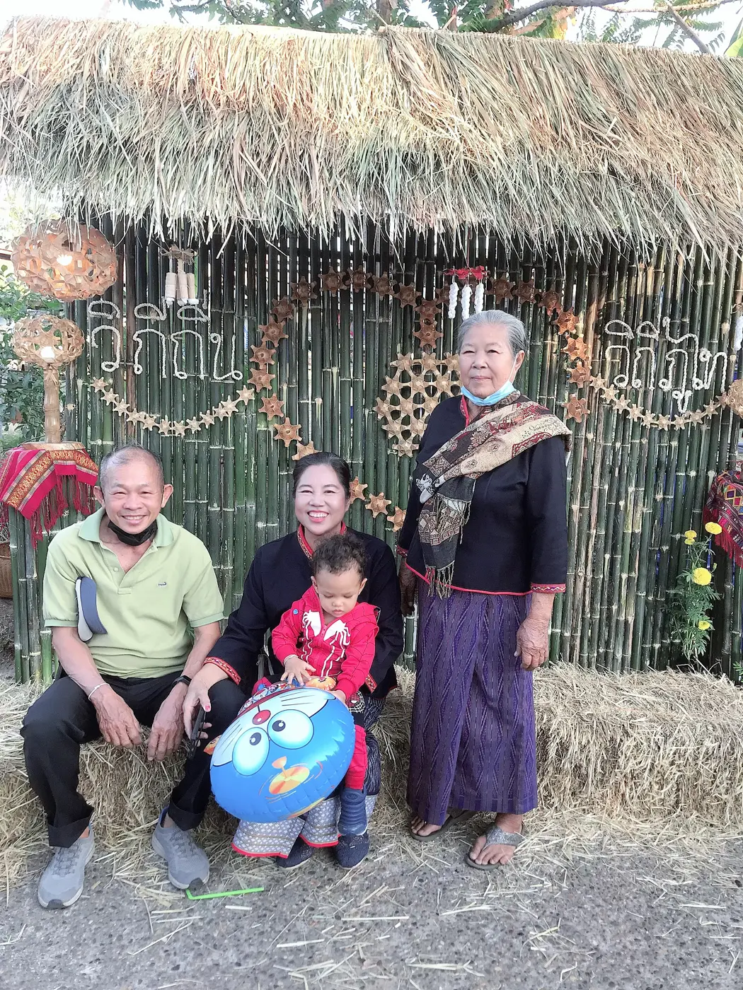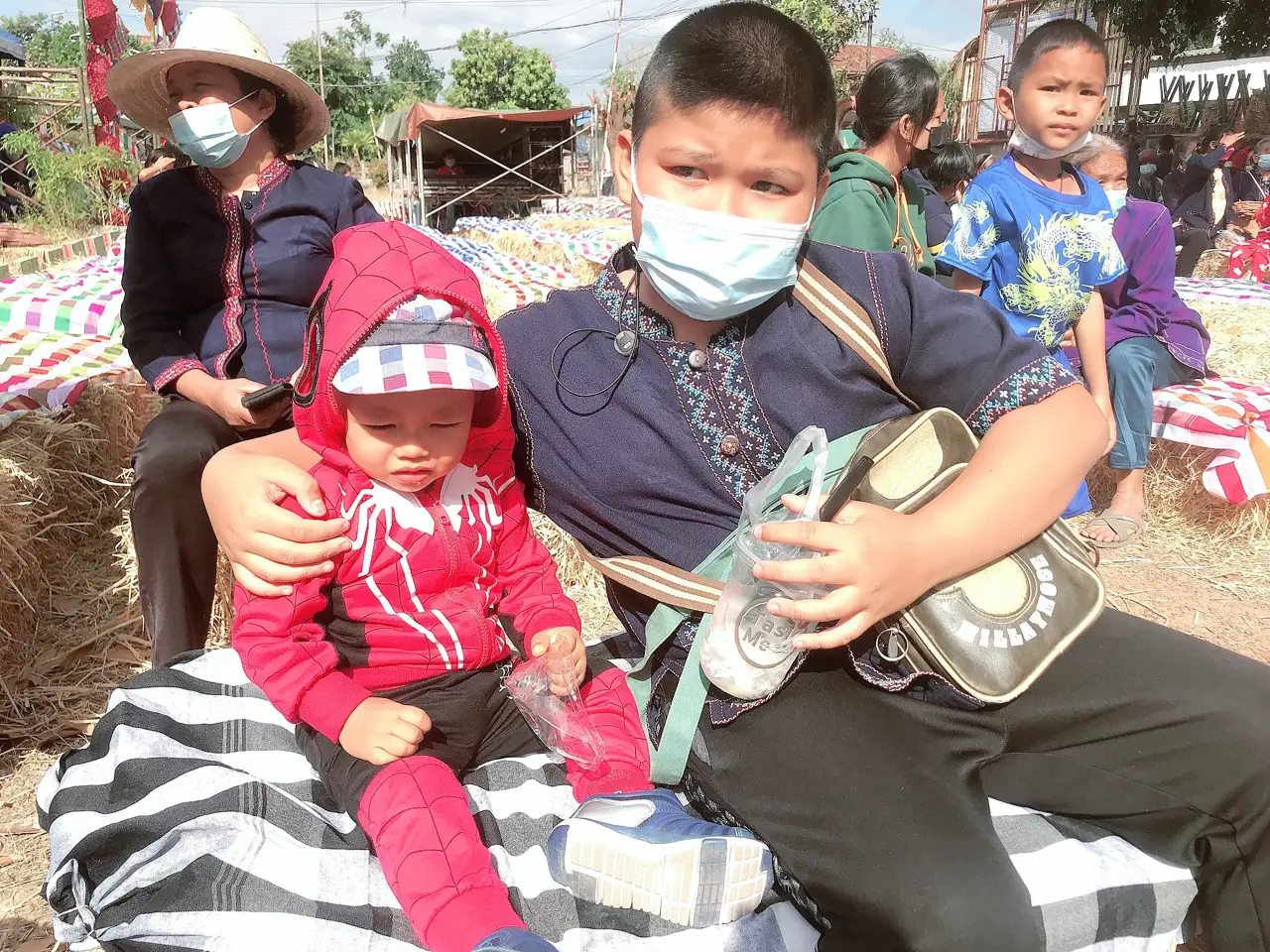 ที่นั่งสำหรับท่านผู้ชมคือการนำก้อนฟางนั้นมาวางเรียงกันจำนวนมาก ให้เด็กๆ และทุกคนได้นั่งกินขนมไปชมการแสดงไปสวยงามบันเทิงทั้งคนรำและคนดู ช่วงนี้เป็นช่วงที่อากาศนั้นจะค่อนข้างหนาวในตอนเย็นและตอนเช้า หากว่าตอนกลางวันนั้นอากาศอุ่นกำลังดี