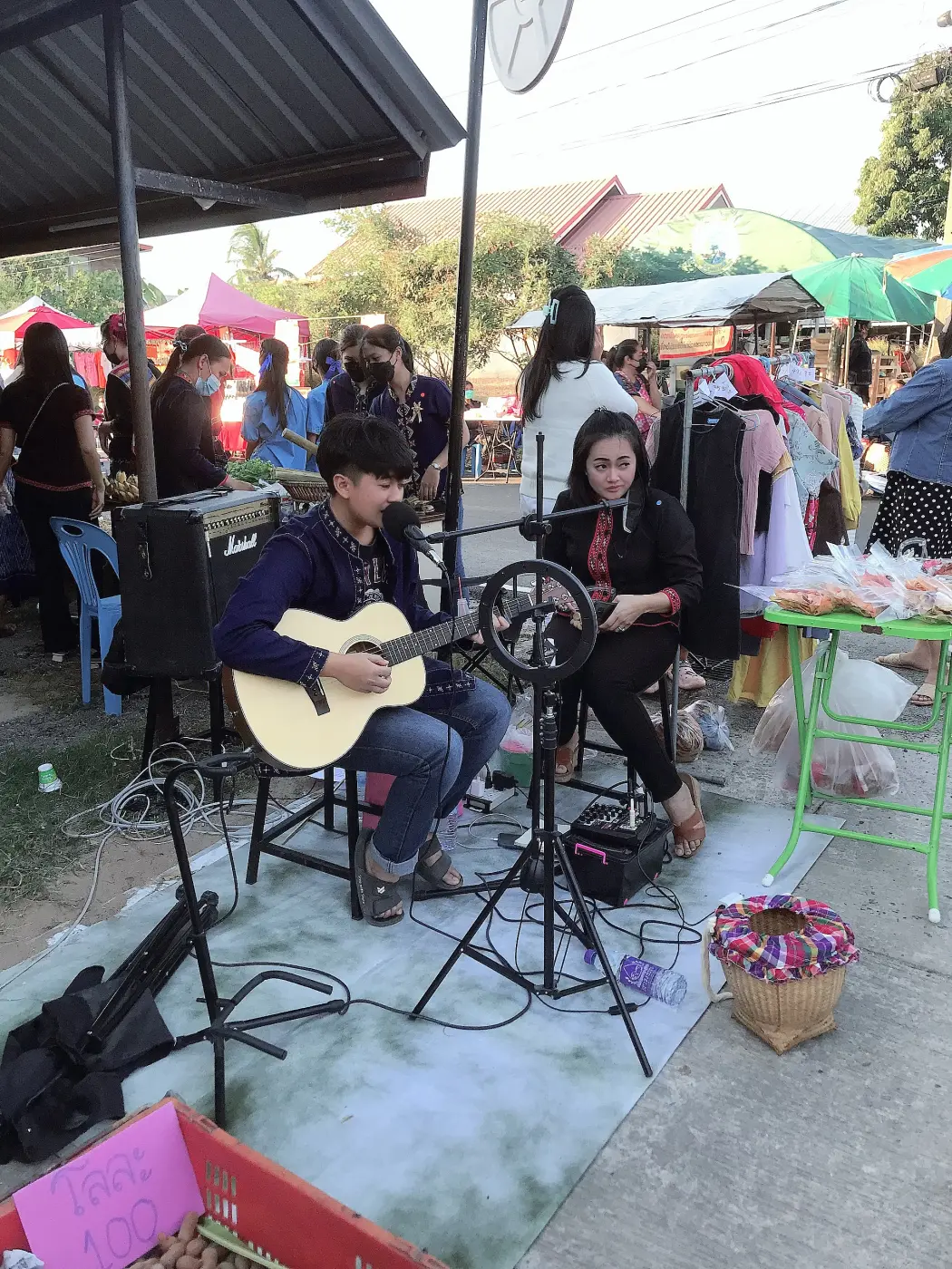 สินค้าที่นำมาขายในถนนคนเดิน คือสินค้าในบ้านเราที่ปลูกเอง ทำเองอาหารพื้นบ้าน เวลาที่เรานั้นเดินมองไปแม่ค้าที่นกของมาขายนั้นคือคนในหมู่บ้าน ชอบมากคืออาหารภูไททีหากินยากหน่อย หากว่าเราเดินไปจนสุดทางนั้นคือแจกฟรีสำหรับเด็กๆ