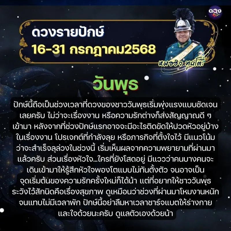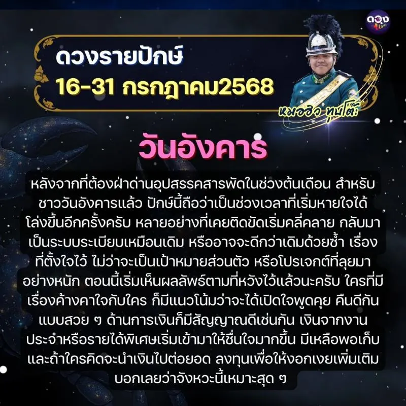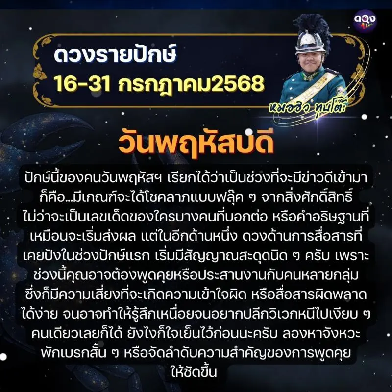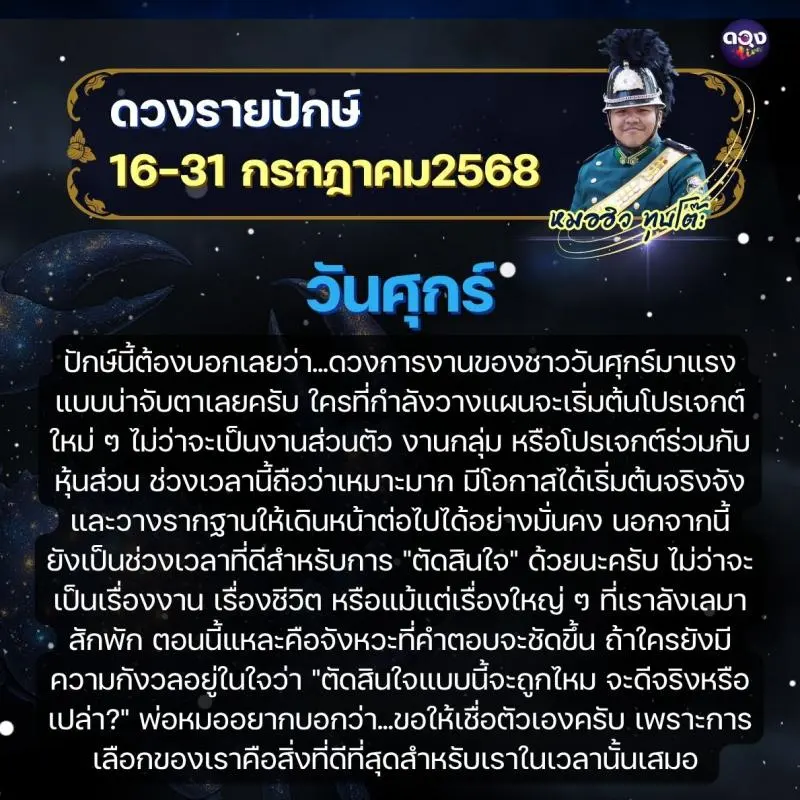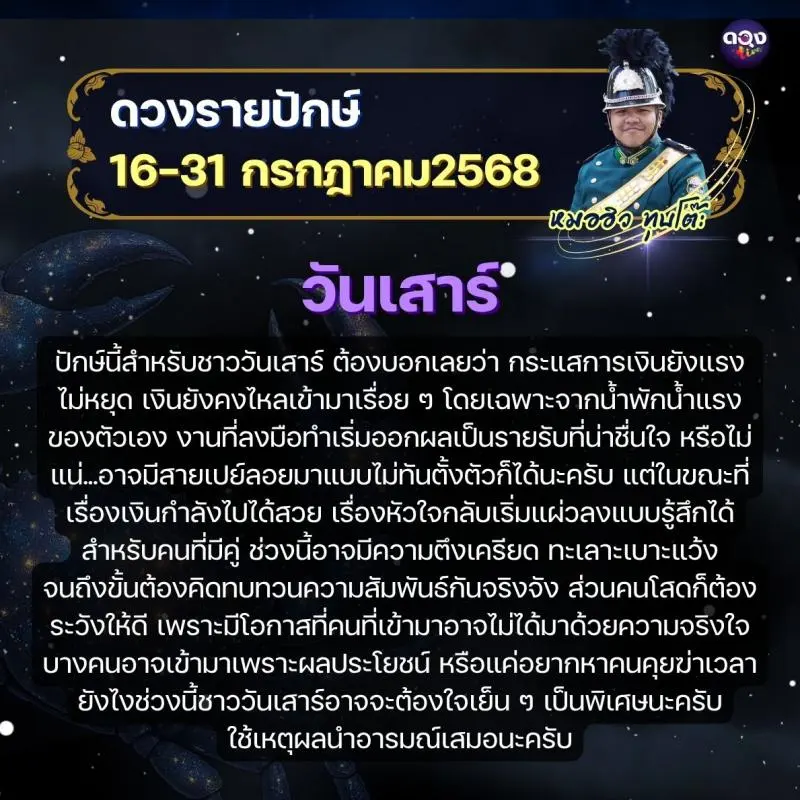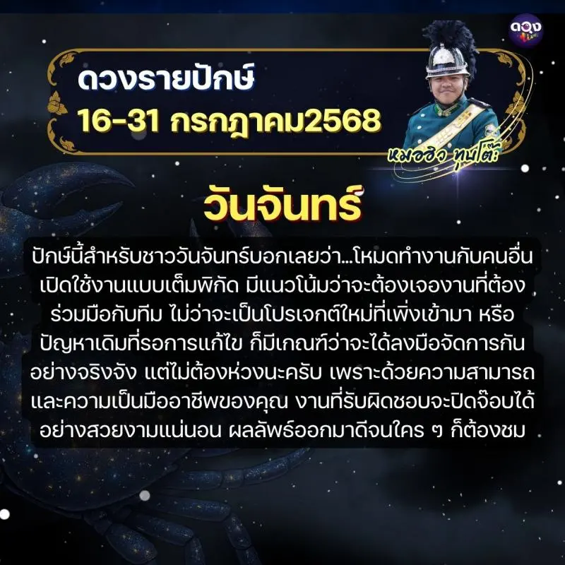 ดวงรายปักษ์ ประจำวันที่ 16 – 31 กรกฎาคม 2568 by หมอฮิว ทุบโต๊ะ