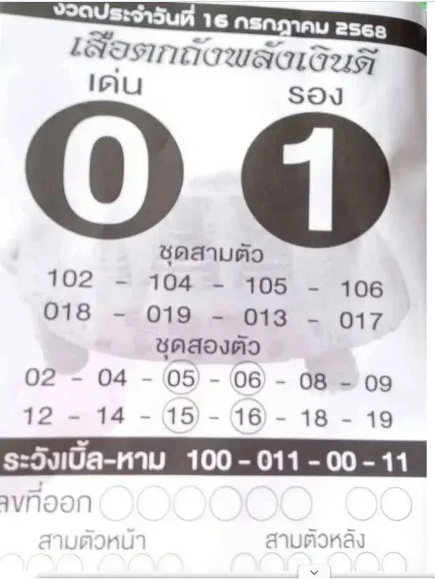 เลขเด็ดเสือตกถังพลังเงินดี ประจำงวดวันที่ 16 กรกฎาคม 2568