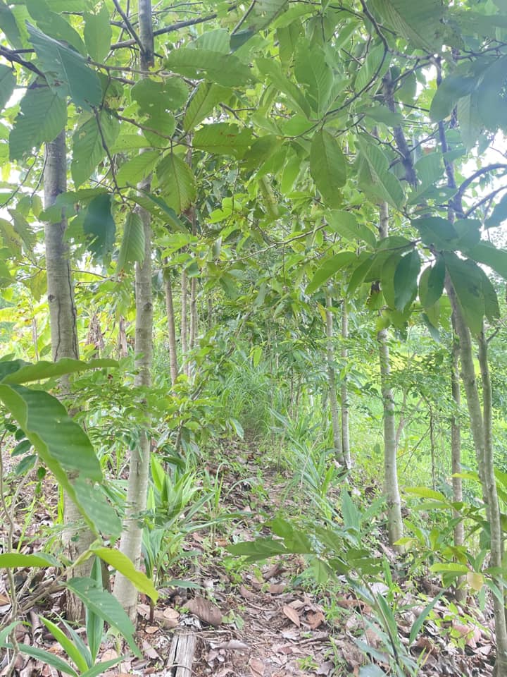 ตรงนี้คือบริเวณที่นำต้นยางมาปลูก หลังจากที่เราน้ันใส่น้ำเชื้อของเห็ดนั้นใส่ลงไปในต้นยาง สภาพอากาศที่เห็ดนั้นน่าจะออกคือ มีฝนตกลงมาพอประมาณ และมีอากาศที่ร้อนอบอ้าวนั้นจะทำให้เห็ดนั้นออกดอก เราเดินเข้าไปดูในป่าได้เลยจะเห็นเจ้าเห็ดนั้นออกดอกจำนวนมากที่ทะลุดินขึ้นมาแอบซ่อนในป่ายาง ใบไม้ยางที่มีความชุ่มชื่น