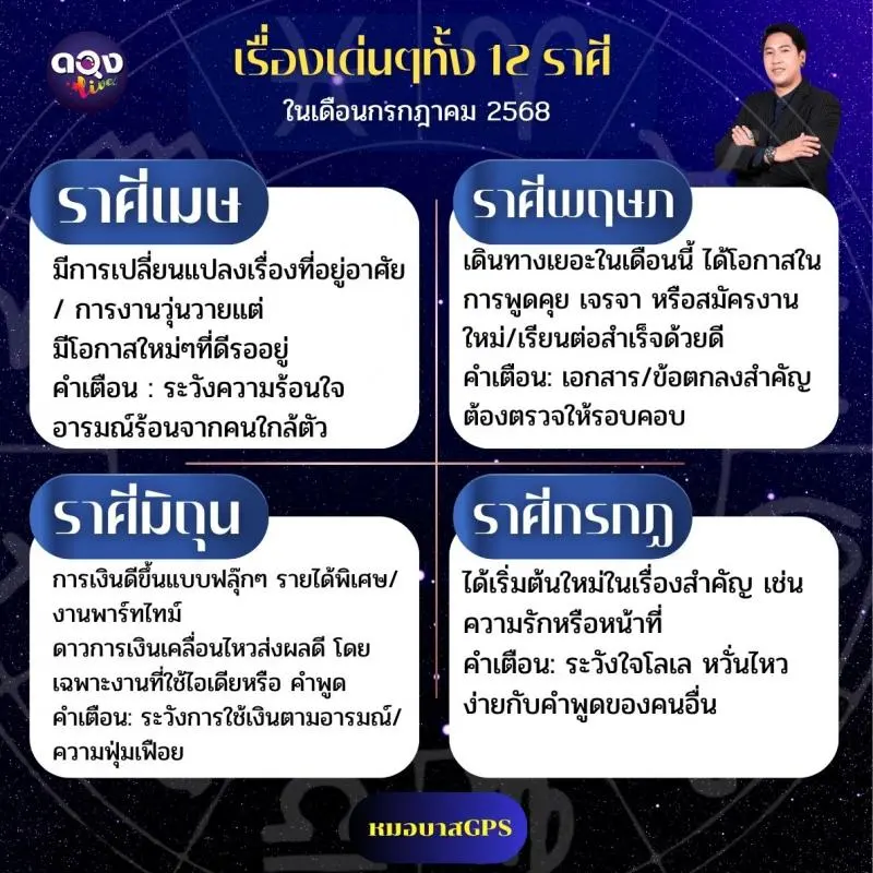 เรื่องเด่นประจำเดือนกรกฎาคม 2568 ทั้ง 12 ราศี by หมอบาสGPS