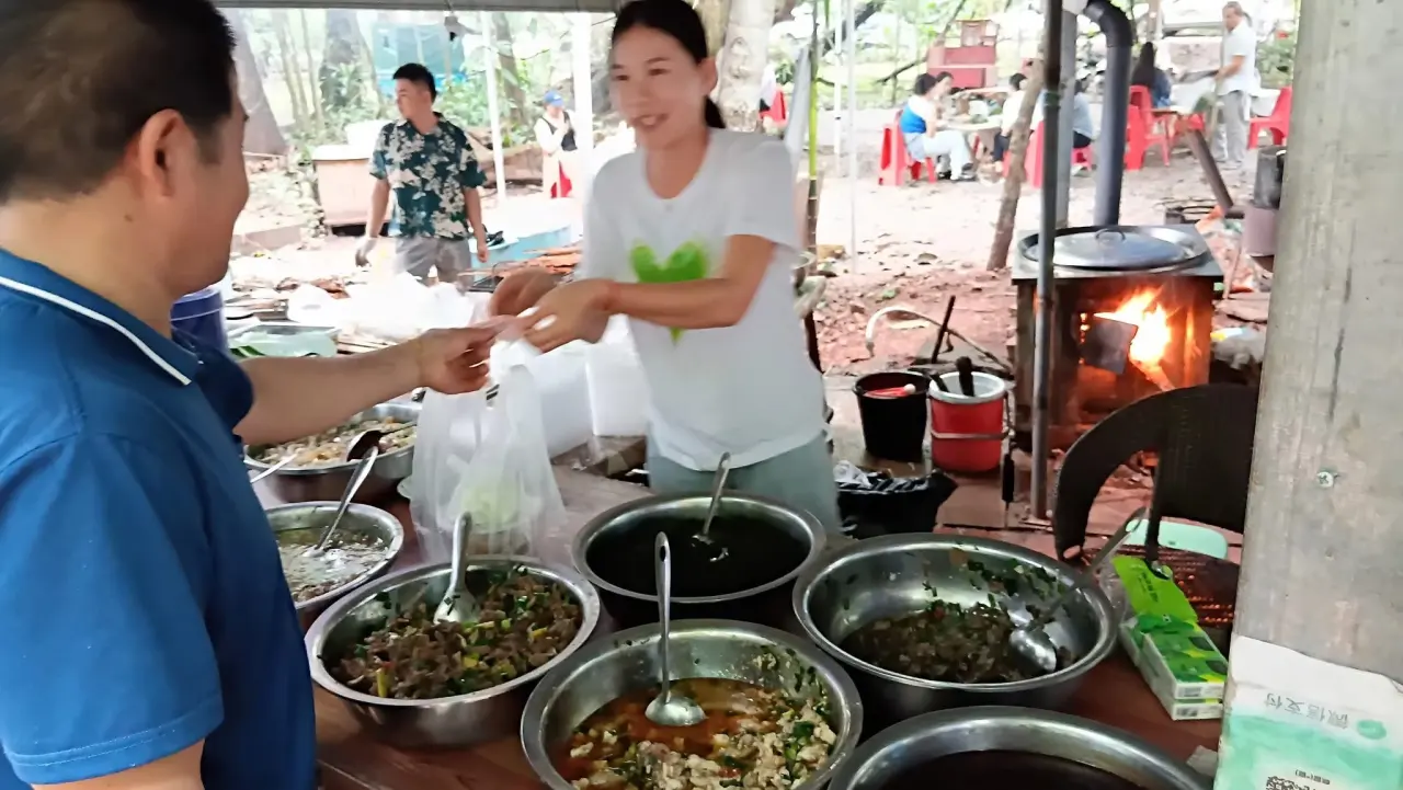 อาหารแบบตักแบบหม้อแต่ที่นี่จะใช้กะละมัง ชี้เลยตรงนี้ไม่ต้องกลัวว่าแม่ค้าจะไม่รู้เรื่องส่วนในเงินนั้นยื่นใบใหญ่ให้ไปก่อนเดี๋ยวเขานั้นจัดการทอนให้