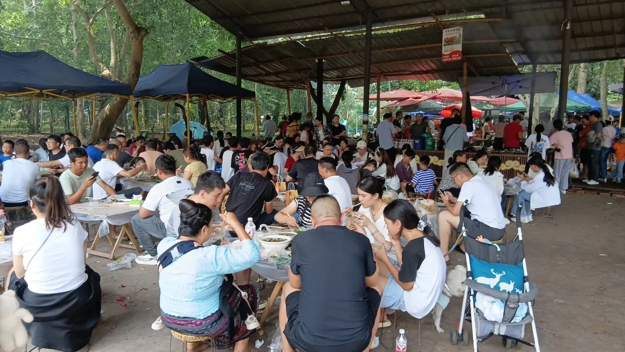 หลังจากที่เรานั้นเดินซื้อของกินและอาหารที่เรานั้นพอใจแล้วก็จะมานั่งทานกันอย่างมีความสุข มีโต๊ะให้บริการฟรี คนเยอะมากตลาดนี้ หากจำไม่ผิดเขาบอกว่ามีทุกวันเสาร์ และคนจะมารวมตัวกันที่นี่เยอะมากเพราะอาหารที่ซื้อนั้นจะมีมากหน้าหลายตาและอร่อย