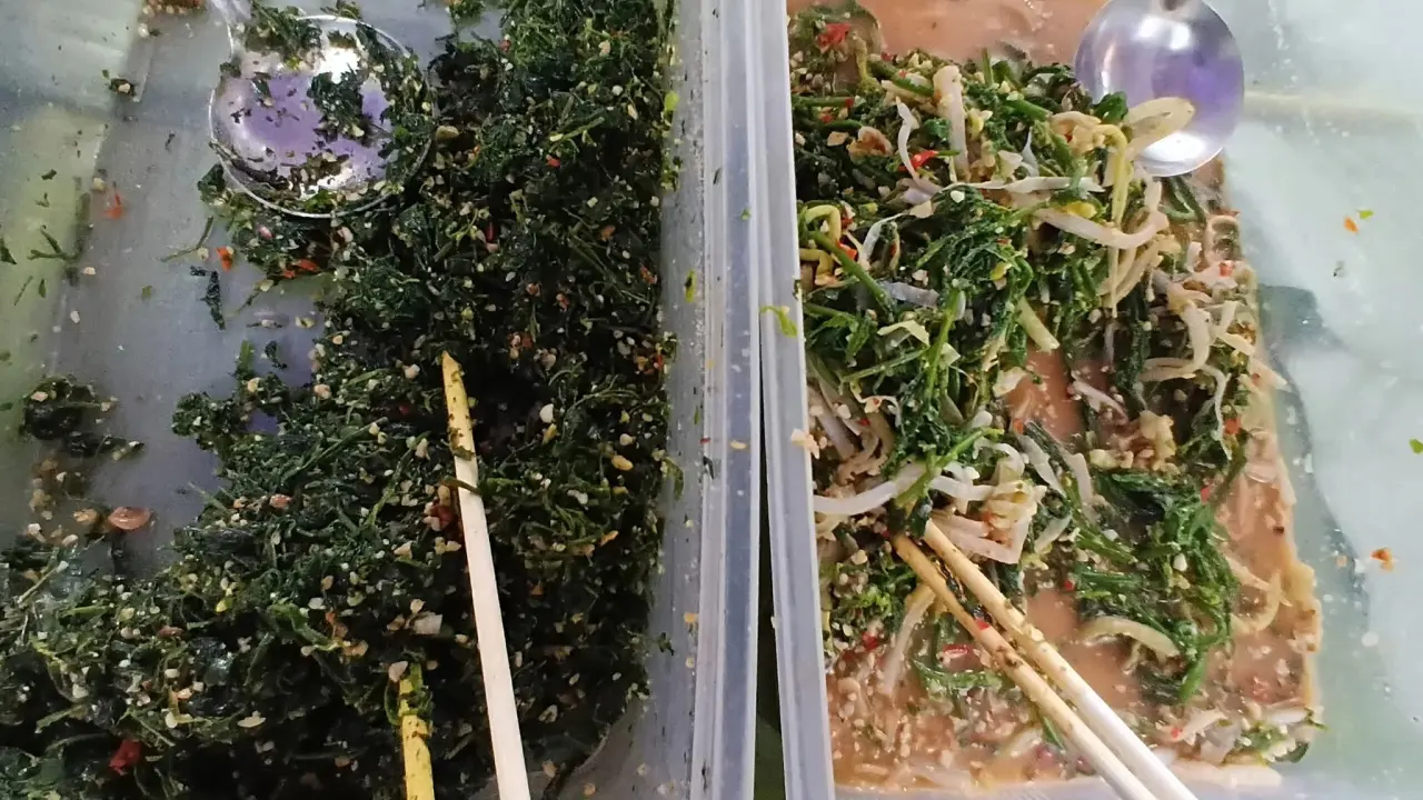 ตรงนี้คือมาแล้วเราเดินเข้าไปใกล้ๆ มันใช่หรือว่ามันคืออาหาร ดูแล้วน่าจะคือผักที่ผสมกันกับพริกปรุงรสชาติแซบนัวมาก อร่อยจนต้องกลับมาซื้อใหม่ อร่อยต้องแถม