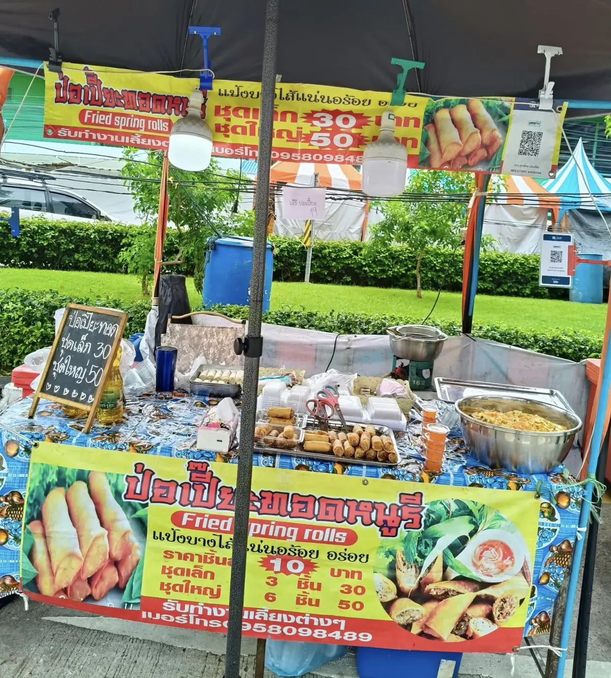 ร้านนี้เราตามมาตั้งแต่ในถนนคนเดินเมื่อครั้งที่แล้ว ร้านนี้ก็มาเหมือนกัน และเราเองได้ชิมที่จำได้เพราะว่ามันมีร้านเดียวที่มีการขายชิ้นละ 10 บาท ชุดเล็กๆ 30 มีสามอัน หากว่าชุดใหญ่นั้น 40 ราคาไม่แพงกินแล้วอิ่มมากกรอบไส้เยอะ กินแล้วหยุดไม่อยู่ หากว่าเรานั้นยังไม่กล้าซื้อลองชิมที่นี่ได้เลย